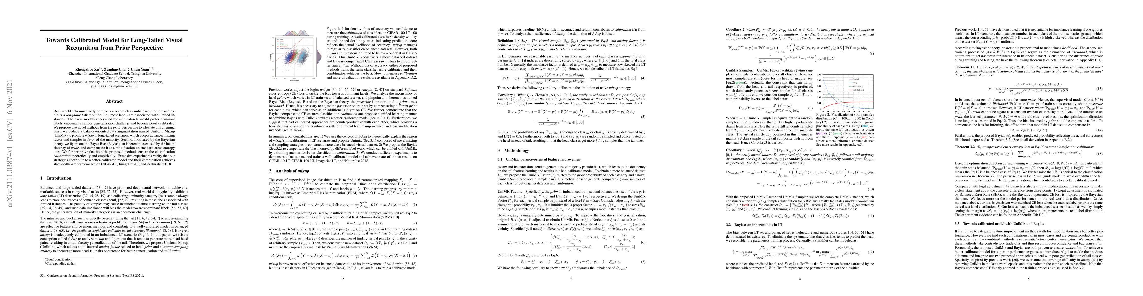 This paper proposes two methods to address class imbalance in long-tailed visual recognition: Uniform Mixup data augmentation and Bayes Bias modification of cross-entropy loss, both of which improve model calibration.