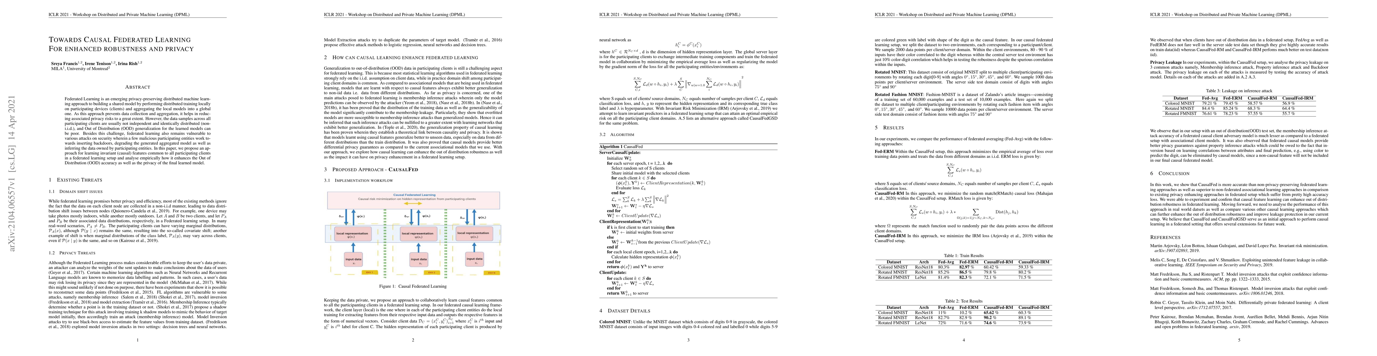 This paper proposes a causal federated learning approach to enhance robustness and privacy by learning invariant features across non-IID clients. The method aims to improve Out of Distribution generalization and mitigate security vulnerabilities, thereby strengthening both model accuracy and data privacy.