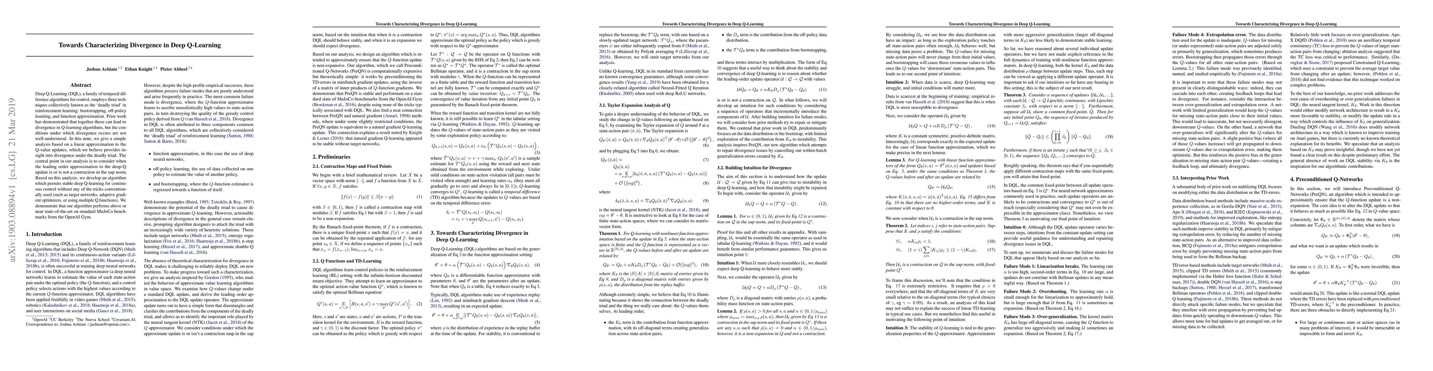 Deep Q-Learning (DQL), a family of temporal difference algorithms for control, employs three techniques collectively known as the `deadly triad' in reinforcement learning: bootstrapping, off-policy learning, and function approximation. Prior work has demonstrated that together these can lead to divergence in Q-learning algorithms, but the conditions under which divergence occurs are not well-understood. In this note, we give a simple analysis based on a linear approximation to the Q-value updates, which we believe provides insight into divergence under the deadly triad. The central point in our analysis is to consider when the leading order approximation to the deep-Q update is or is not a contraction in the sup norm. Based on this analysis, we develop an algorithm which permits stable deep Q-learning for continuous control without any of the tricks conventionally used (such as target networks, adaptive gradient optimizers, or using multiple Q functions). We demonstrate that our algorithm performs above or near state-of-the-art on standard MuJoCo benchmarks from the OpenAI Gym.