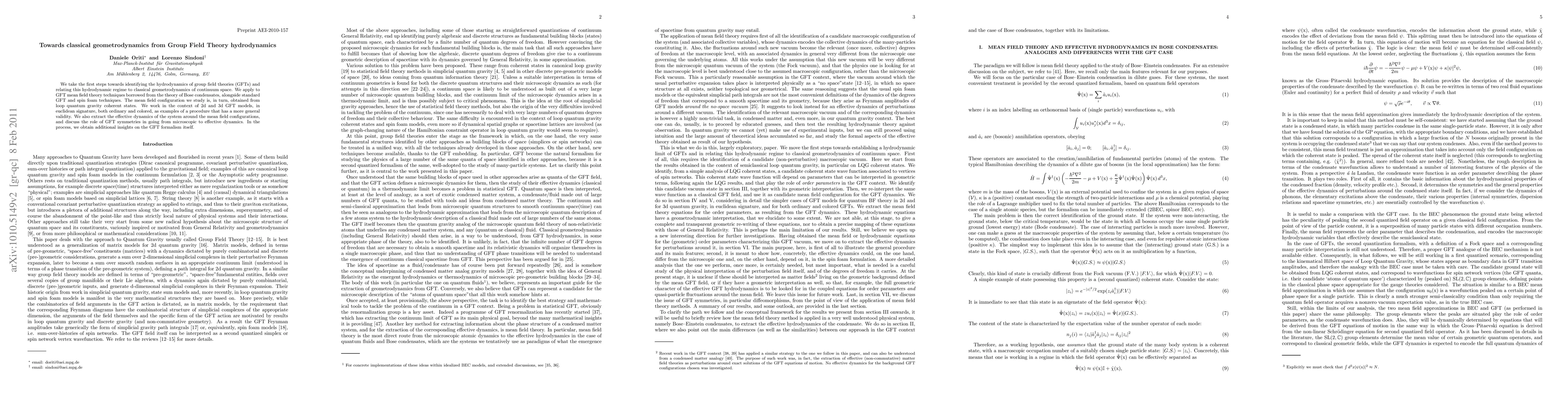 We take the first steps towards identifying the hydrodynamics of group field theories (GFTs) and relating this hydrodynamic regime to classical geometrodynamics of continuum space. We apply to GFT mean field theory techniques borrowed from the theory of Bose condensates, alongside standard GFT and spin foam techniques. The mean field configuration we study is, in turn, obtained from loop quantum gravity coherent states. We work in the context of 2d and 3d GFT models, in euclidean signature, both ordinary and colored, as examples of a procedure that has a more general validity. We also extract the effective dynamics of the system around the mean field configurations, and discuss the role of GFT symmetries in going from microscopic to effective dynamics. In the process, we obtain additional insights on the GFT formalism itself.