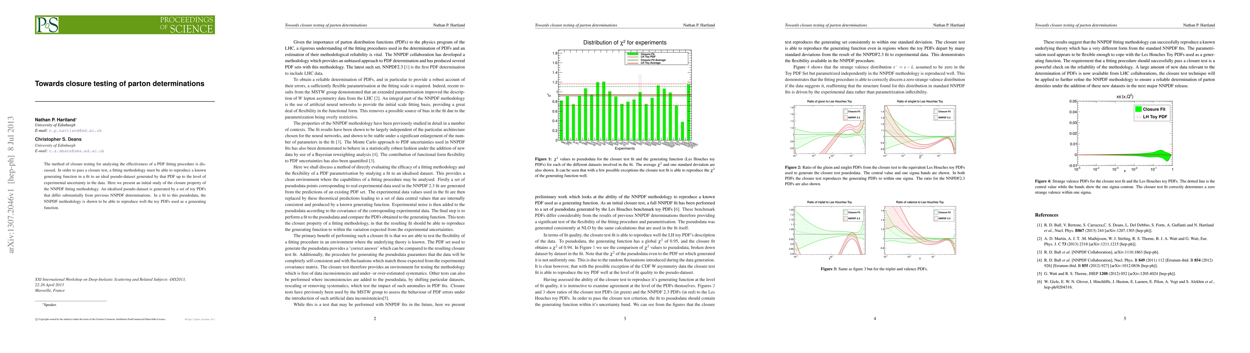 This study introduces closure testing for evaluating PDF fitting procedures, focusing on the NNPDF methodology. It demonstrates that NNPDF can accurately reproduce toy PDFs used as a generating function in an idealized pseudo-dataset, passing the closure test.