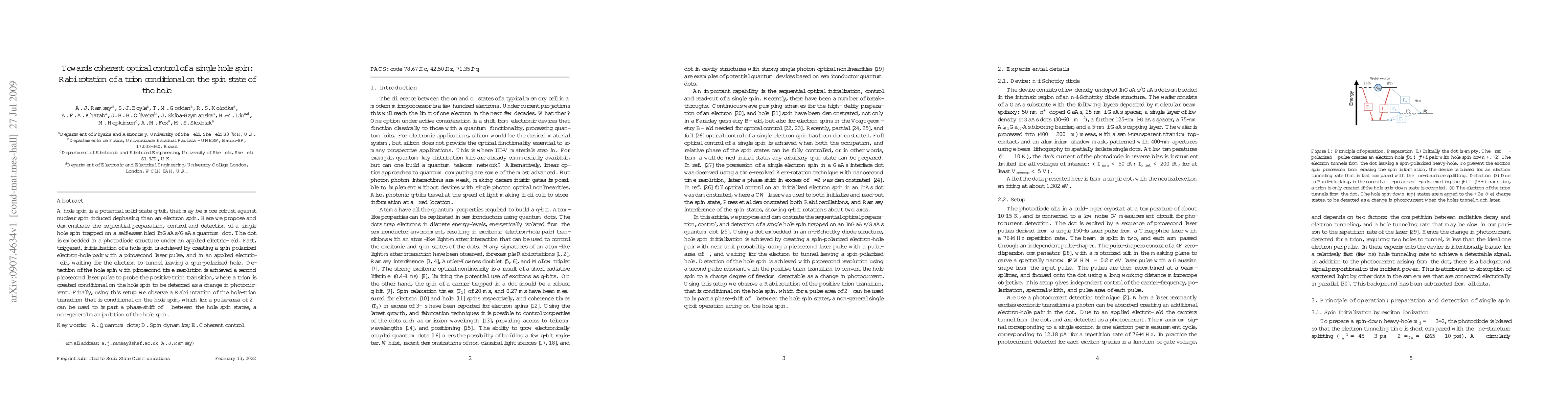A hole spin is a potential solid-state q-bit, that may be more robust against nuclear spin induced dephasing than an electron spin. Here we propose and demonstrate the sequential preparation, control and detection of a single hole spin trapped on a self-assembled InGaAs/GaAs quantum dot. The dot is embedded in a photodiode structure under an applied electric-field. Fast, triggered, initialization of a hole spin is achieved by creating a spin-polarized electron-hole pair with a picosecond laser pulse, and in an applied electric-field, waiting for the electron to tunnel leaving a spin-polarized hole. Detection of the hole spin with picosecond time resolution is achieved a second picosecond laser pulse to probe the positive trion transition, where a trion is created conditional on the hole spin to be detected as a change in photocurrent. Finally, using this setup we observe a Rabi rotation of the hole-trion transition that is conditional on the hole spin, which for a pulse-area of $2\pi$ can be used to impart a phase-shift of $\pi$ between the hole spin states, a non-general manipulation of the hole spin.