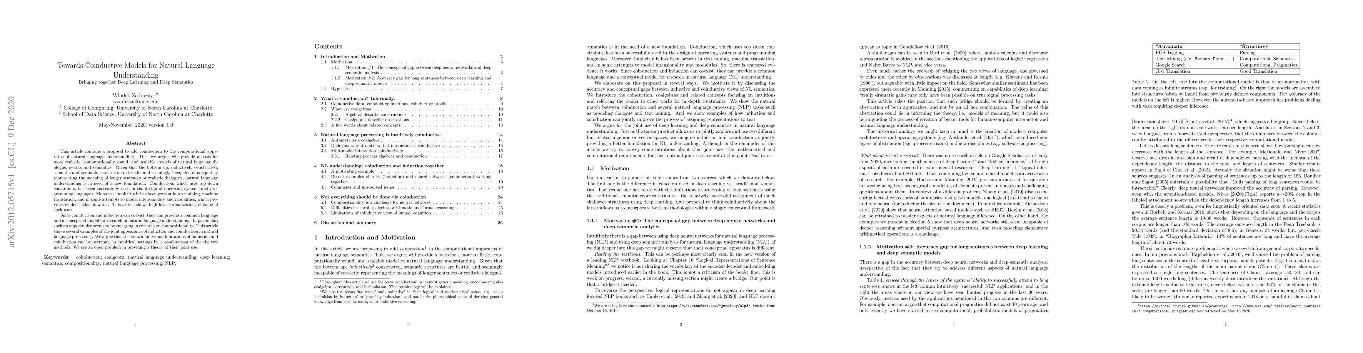 This paper proposes integrating coinduction into natural language understanding to create more robust and scalable models, arguing that coinduction's top-down approach can complement the brittleness of inductive models, especially for longer sentences and dialogues. It suggests that combining induction and coinduction may overcome individual limitations and calls for a theoretical framework for their joint use.