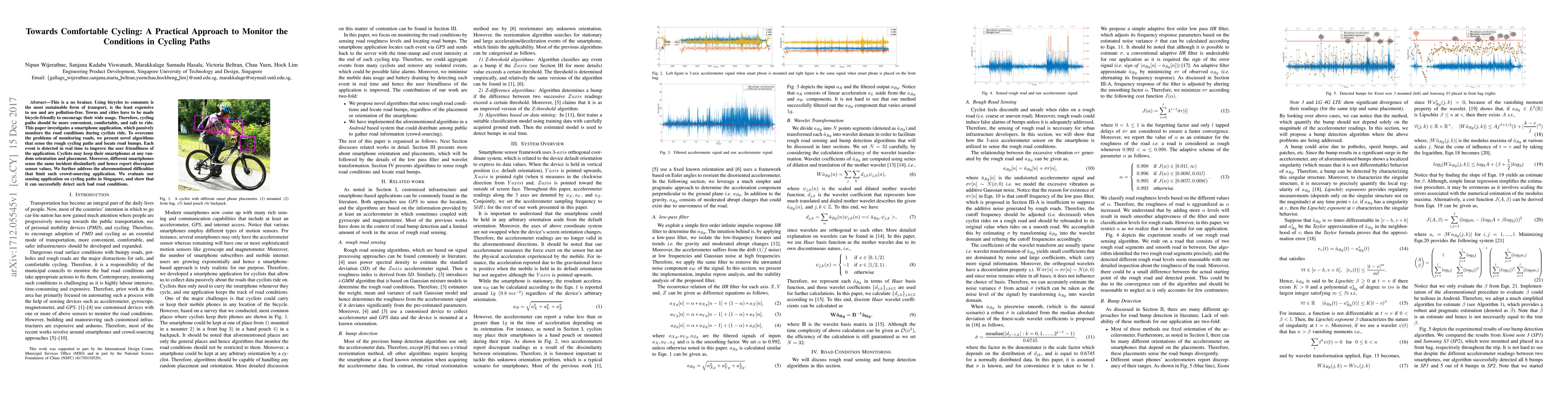 This paper introduces a smartphone app that passively monitors cycling path conditions, using novel algorithms to detect bumps and rough surfaces in real-time, regardless of phone orientation or type. Evaluation in Singapore shows successful detection of poor road conditions.
