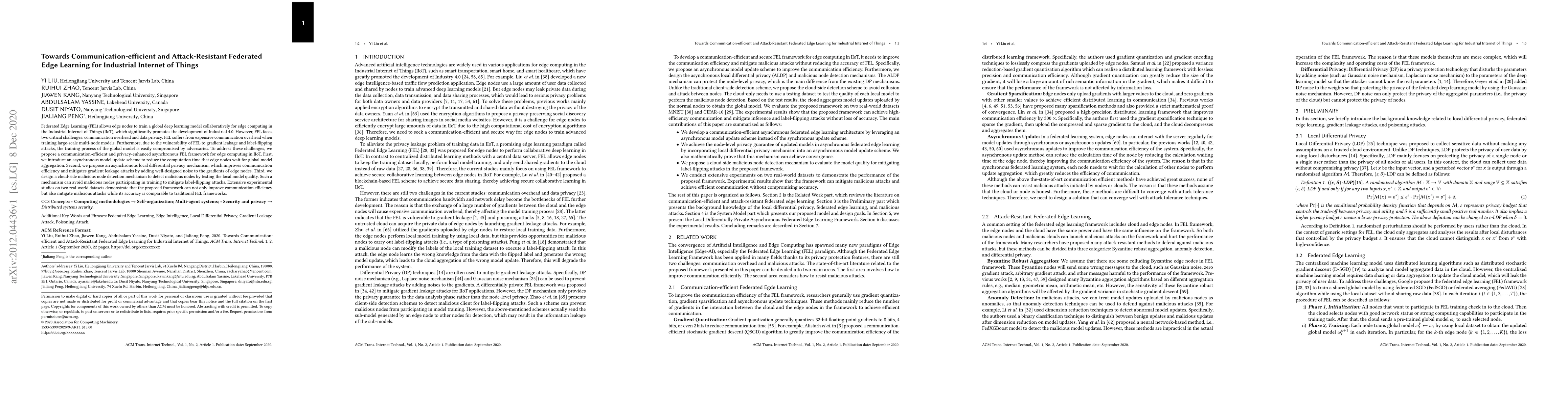 The paper proposes a communication-efficient and attack-resistant framework for Federated Edge Learning (FEL) in the Industrial Internet of Things (IIoT). It addresses communication overhead and data privacy by introducing asynchronous model updates, local differential privacy, and a malicious node detection mechanism to enhance security against gradient leakage and label-flipping attacks.