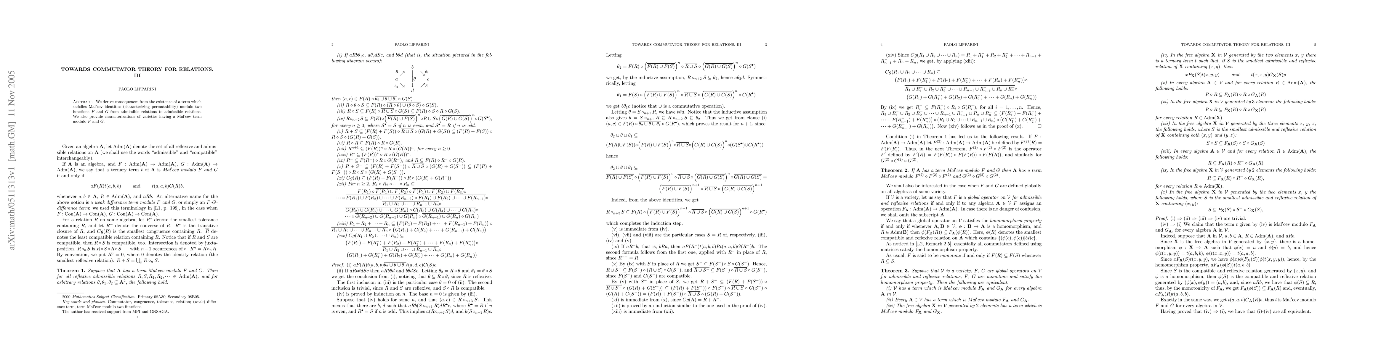 Researchers derive consequences from a term satisfying Mal'cev identities for permutability between relations, and provide characterizations of varieties with such a term.