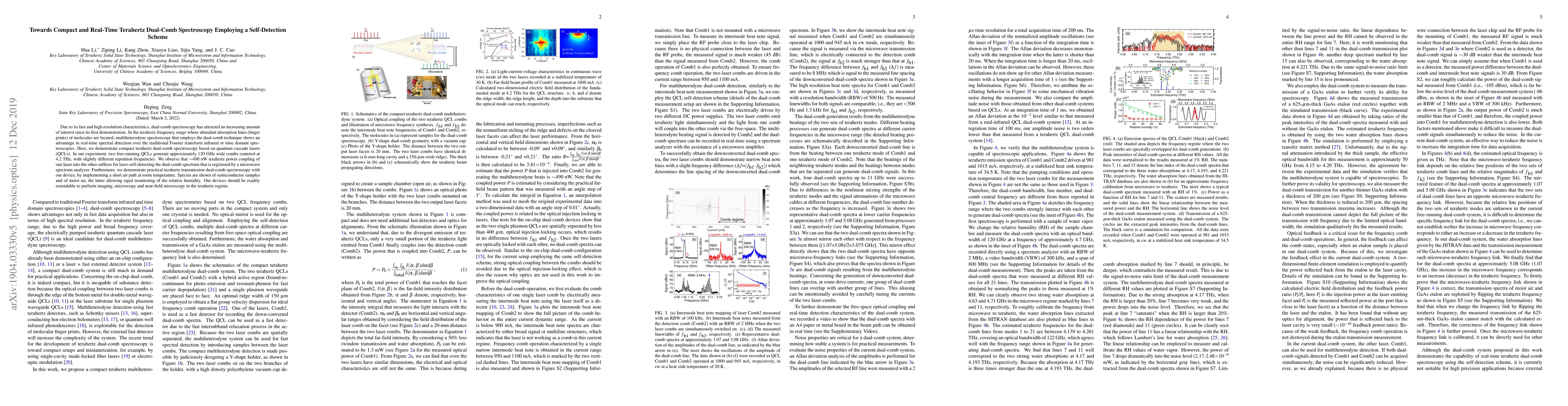 This research presents a compact and real-time terahertz dual-comb spectroscopy system using self-detection with quantum cascade lasers (QCLs), demonstrating high-resolution spectral detection in the terahertz frequency range and potential for rapid monitoring of relative humidity and extended applications in imaging.
