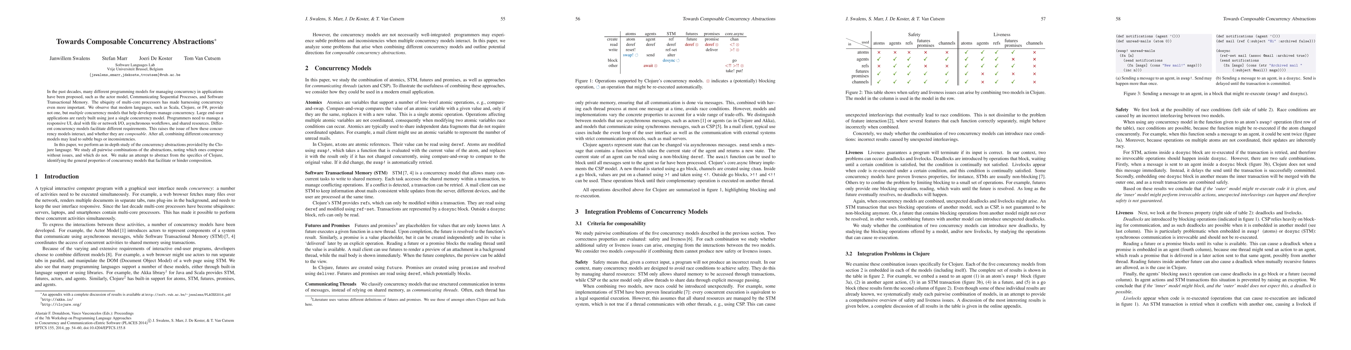 The paper performs an in-depth study of concurrency abstractions in the Clojure language, examining all pairwise combinations to identify which compose without issues and which do not.