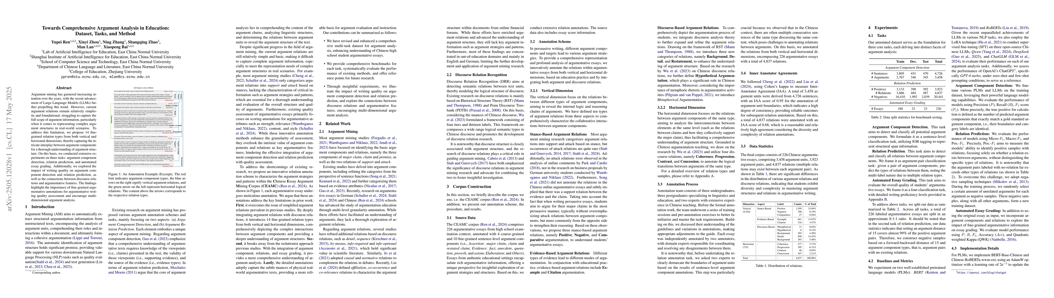 Researchers developed a new framework for comprehensive argument analysis in education, proposing 14 fine-grained relation types to capture complex argument structures. Their experiments showed the importance of detailed annotations for assessing argumentative writing quality.