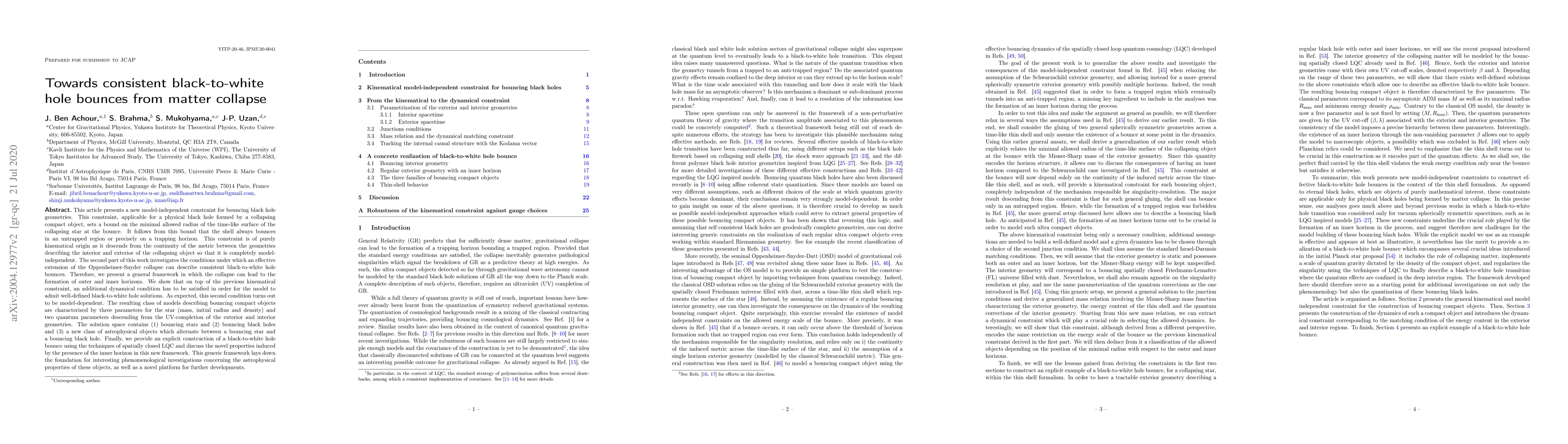 This paper establishes a model-independent kinematical constraint for bouncing black hole geometries, ensuring the collapse always occurs in an untrapped region or on a trapping horizon. It also identifies a model-dependent dynamical condition necessary for consistent black-to-white hole transitions, leading to a new class of astrophysical objects that alternate between bouncing stars and black holes.