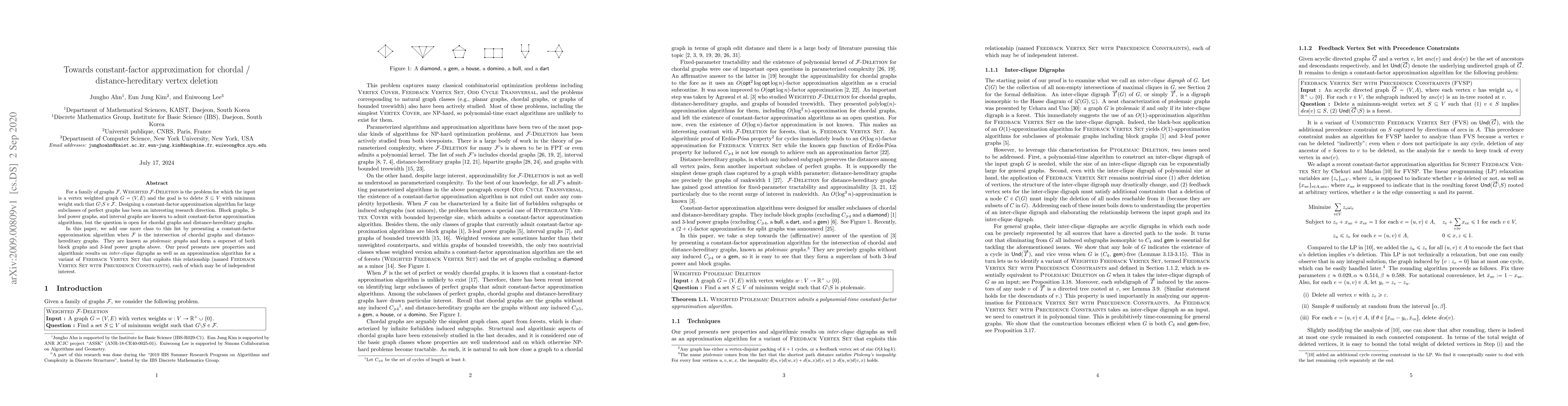 This paper presents a constant-factor approximation algorithm for Weighted ptolemaic-Deletion, where ptolemaic graphs are the intersection of chordal and distance-hereditary graphs. The authors introduce new properties and results on inter-clique digraphs and a variant of Feedback Vertex Set with Precedence Constraints.