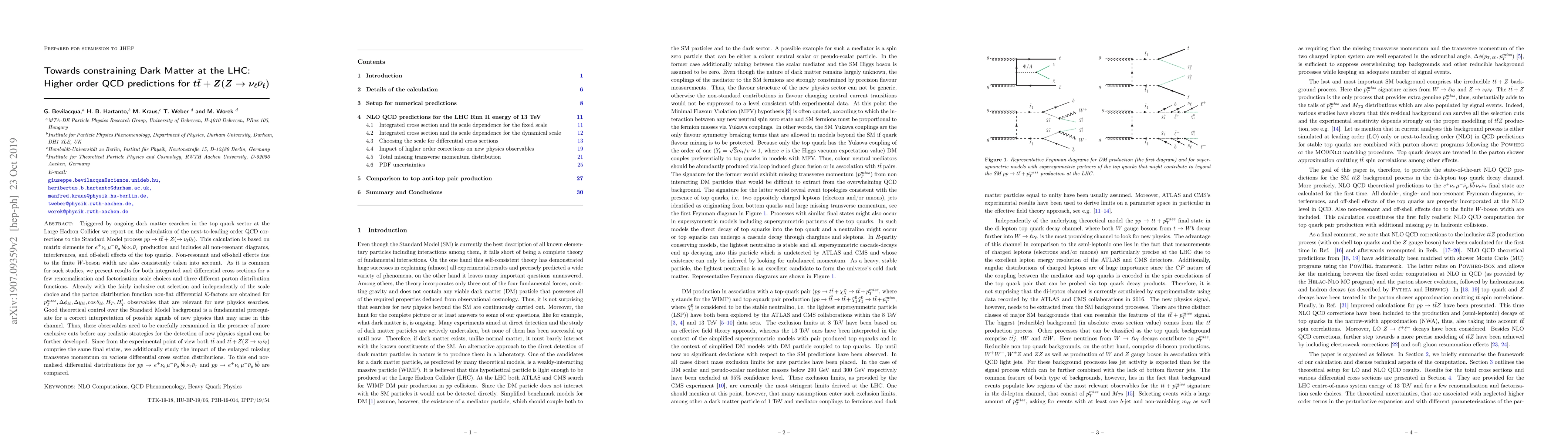 Triggered by ongoing dark matter searches in the top quark sector at the Large Hadron Collider we report on the calculation of the next-to-leading order QCD corrections to the Standard Model process $pp\to t\bar{t}+ Z(\to \nu_\ell \bar{\nu}_\ell)$. This calculation is based on matrix elements for $e^+\nu_e \, \mu^- \bar{\nu}_\mu \, b\bar{b} \, \nu_\tau \bar{\nu}_\tau$ production and includes all non-resonant diagrams, interferences, and off-shell effects of the top quarks. Non-resonant and off-shell effects due to the finite $W$-boson width are also consistently taken into account. As it is common for such studies, we present results for both integrated and differential cross sections for a few renormalisation and factorisation scale choices and three different parton distribution functions. Already with the fairly inclusive cut selection and independently of the scale choice and the parton distribution function non-flat differential ${\cal K}$-factors are obtained for $p_T^{miss}, \Delta \phi_{\ell\ell}, \Delta y_{\ell\ell}, \cos\theta_{\ell\ell}, H_T, H^\prime_T$ observables that are relevant for new physics searches. Good theoretical control over the Standard Model background is a fundamental prerequisite for a correct interpretation of possible signals of new physics that may arise in this channel. Thus, these observables need to be carefully reexamined in the presence of more exclusive cuts before any realistic strategies for the detection of new physics signal can be further developed.