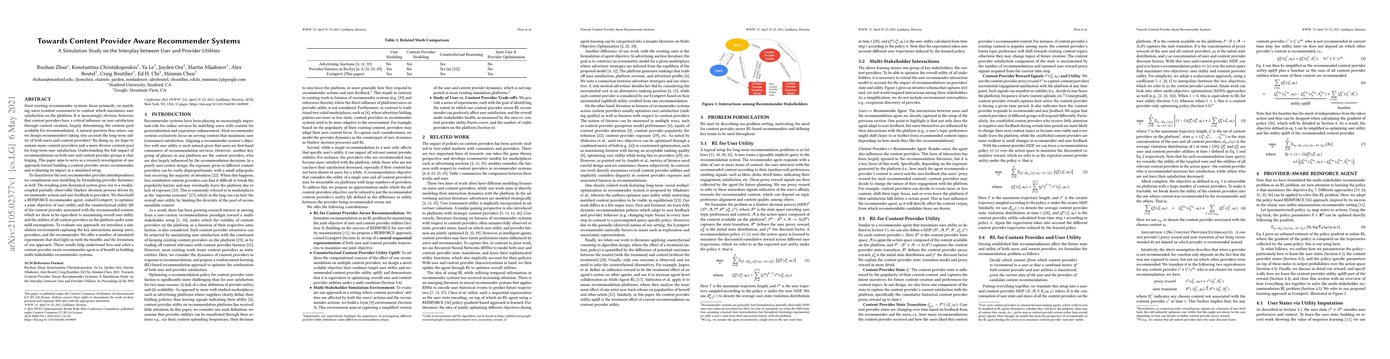 This paper explores the development of a provider-aware recommender system that optimizes both user and content provider satisfaction through a simulation study. It introduces a REINFORCE-based recommender agent, EcoAgent, that maximizes a joint objective of user utility and provider utility lift, demonstrating its effectiveness in a simulated environment.