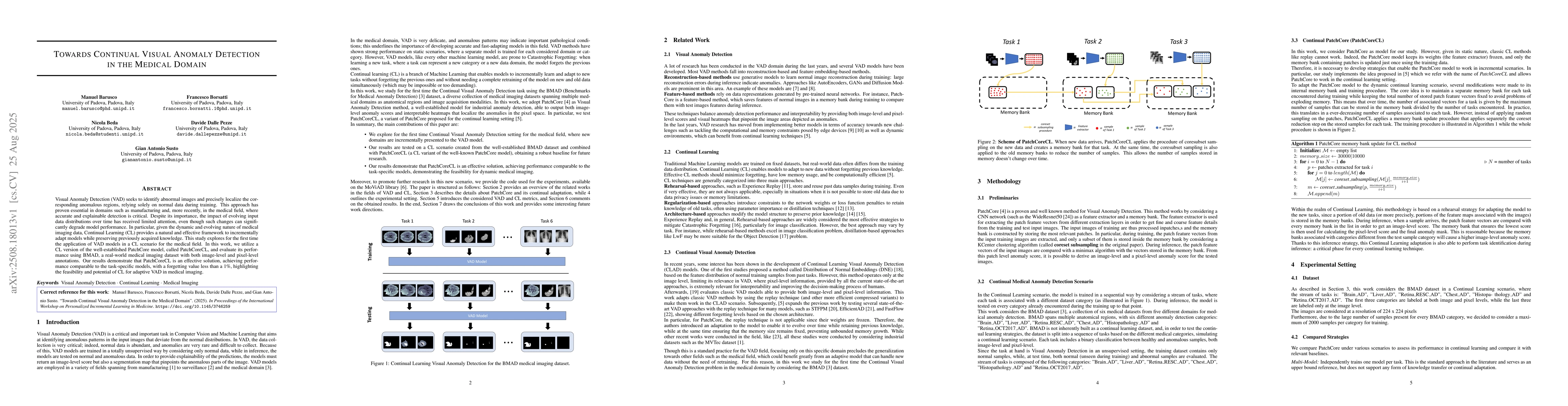 Visual Anomaly Detection (VAD) seeks to identify abnormal images and precisely localize the corresponding anomalous regions, relying solely on normal data during training. This approach has proven essential in domains such as manufacturing and, more recently, in the medical field, where accurate and explainable detection is critical. Despite its importance, the impact of evolving input data distributions over time has received limited attention, even though such changes can significantly degrade model performance. In particular, given the dynamic and evolving nature of medical imaging data, Continual Learning (CL) provides a natural and effective framework to incrementally adapt models while preserving previously acquired knowledge. This study explores for the first time the application of VAD models in a CL scenario for the medical field. In this work, we utilize a CL version of the well-established PatchCore model, called PatchCoreCL, and evaluate its performance using BMAD, a real-world medical imaging dataset with both image-level and pixel-level annotations. Our results demonstrate that PatchCoreCL is an effective solution, achieving performance comparable to the task-specific models, with a forgetting value less than a 1%, highlighting the feasibility and potential of CL for adaptive VAD in medical imaging.