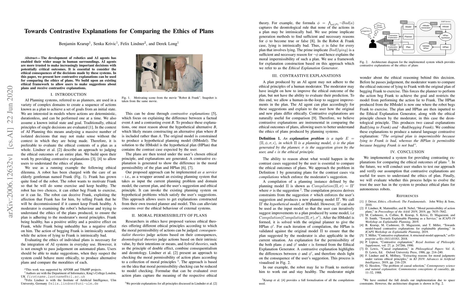 This paper explores the use of contrastive explanations to compare the ethics of AI-generated plans, building on an existing ethical framework to enable user suggestions and provide clear, comparative ethical insights. The goal is to enhance the transparency and accountability of decisions made by AI agents in human environments.