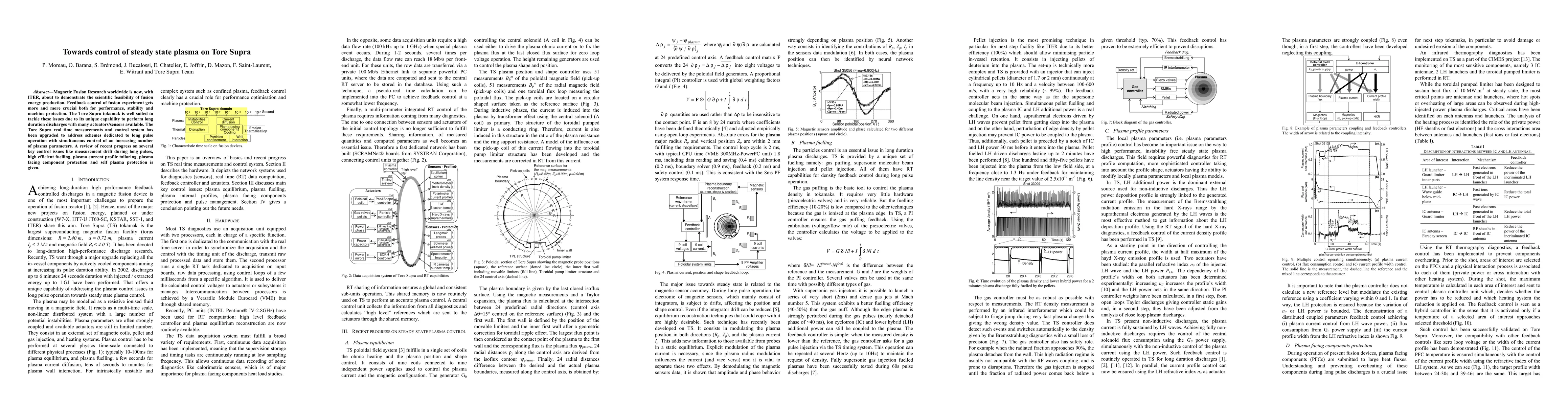 The Tore Supra tokamak is the largest superconducting magnetic fusion facility, has been devoted to long-duration high-performance discharge research. With a steady-state magnetic field and water cooled plasma facing components, discharges up to 6 minutes 24 seconds duration with injected / extracted energy up to 1 GJ have been performed. The Tore Supra real time measurements and control (RTMC) system has been upgraded to address schemes dedicated to long pulse operation with simultaneous control of an increasing number of plasma parameters. This includes plasma equilibrium control with possible self calibration during the discharge, plasma density control with possible pellet injection, current profile control to avoid magneto-hydrodynamic (MHD) instabilities and infrared monitoring of plasma facing components preventing overheating. Most of these improvements are relevant to the tokamaks operation in a fully steady state regime.