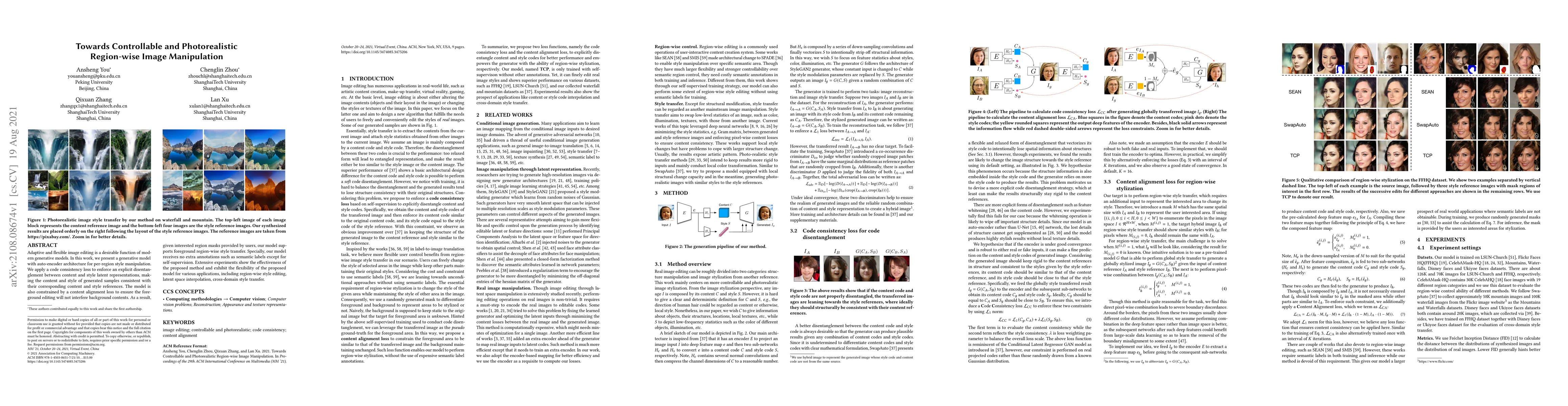 A new generative model allows for controllable and photorealistic region-wise image manipulation without requiring additional annotations, enabling flexible style transfer and editing.