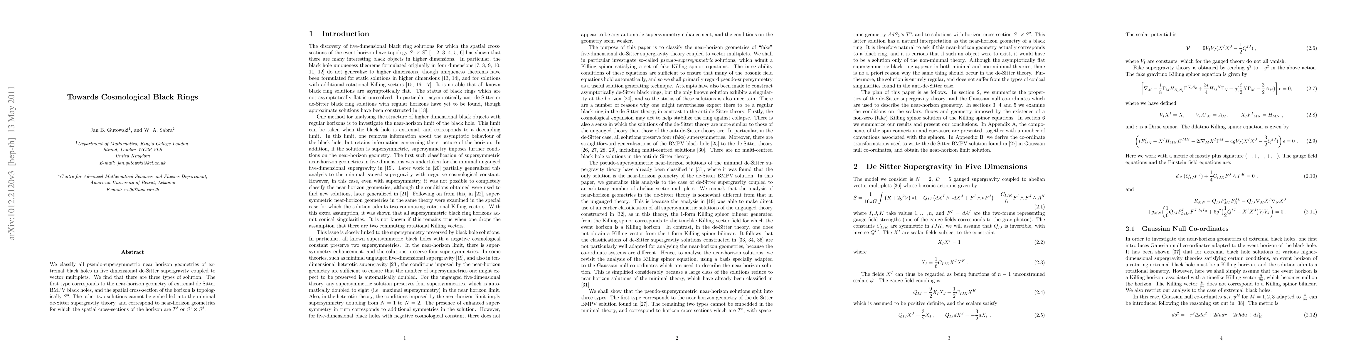 We classify all pseudo-supersymmetric near horizon geometries of extremal black holes in five dimensional de-Sitter supergravity coupled to vector multiplets. We find that there are three types of solution. The first type corresponds to the near-horizon geometry of extremal de Sitter BMPV black holes, and the spatial cross-section of the horizon is topologically S^3. The other two solutions cannot be embedded into the minimal de-Sitter supergravity theory, and correspond to near-horizon geometries for which the spatial cross-sections of the horizon are T^3 or S^1 * S^2.