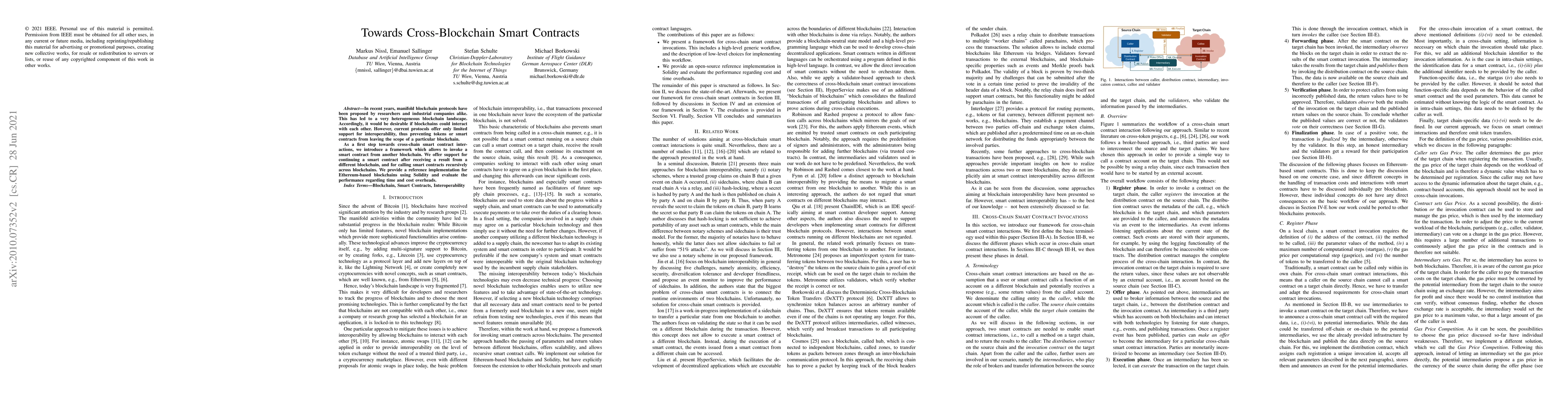 This paper proposes a framework for enabling cross-blockchain smart contract interactions, allowing Ethereum-based smart contracts to invoke and continue operations on contracts from different blockchains. It provides a reference implementation and evaluates the time and cost overheads.