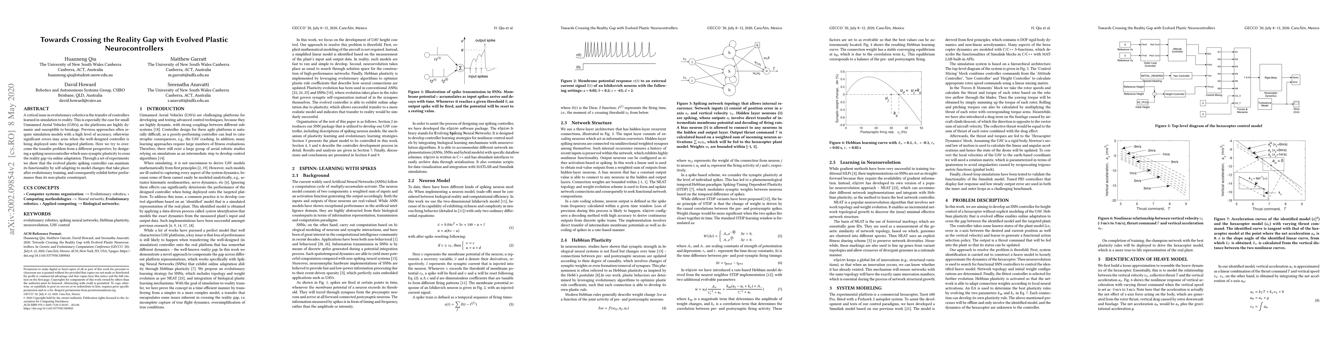This research proposes a solution to the reality gap issue in evolutionary robotics, specifically for small UAVs. It introduces a spiking neurocontroller with synaptic plasticity that self-adapts to model changes after training, demonstrating better performance than non-plastic controllers in real-world applications.