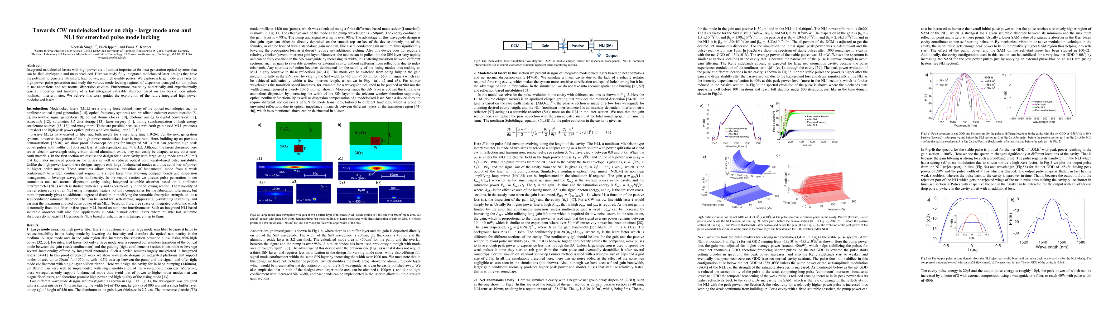This paper investigates fully integrated modelocked laser designs capable of generating ultrashort, high power pulses, focusing on large mode area lasers and dispersion managed soliton pulses. It also explores the tunability of a silicon nitride nonlinear interferometer-based saturable absorber, aiming to guide future developments in high power, integrated modelocked lasers.