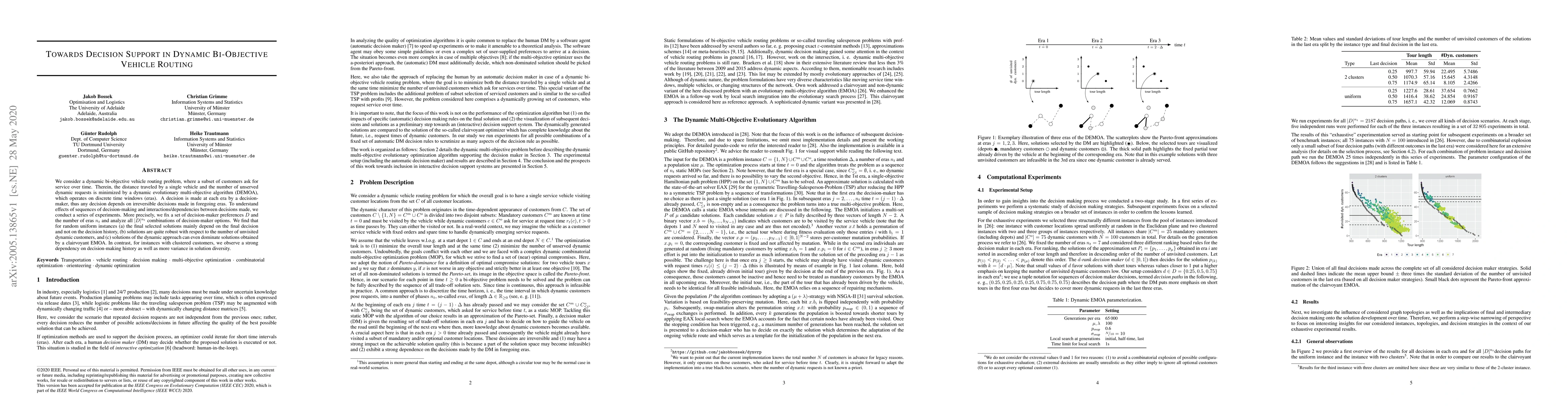 A dynamic bi-objective vehicle routing problem was studied using a decision-making framework, revealing that solutions can be robust to changes in customer requests, but may heavily depend on the decision-making history for clustered customers.