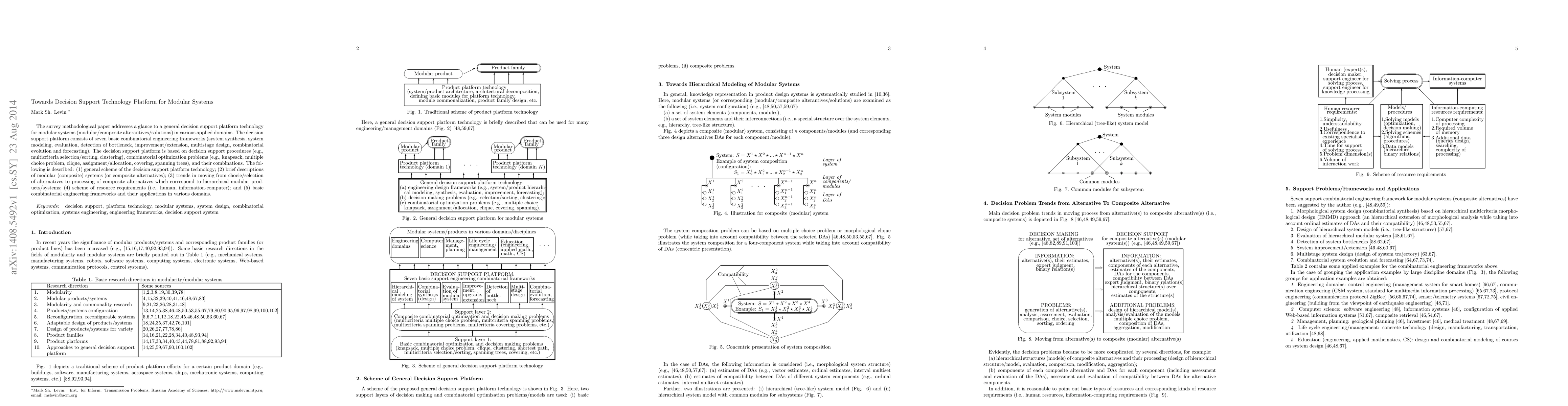 This paper surveys a decision support technology platform for modular systems, outlining seven combinatorial engineering frameworks and various decision support procedures and combinatorial optimization problems. It discusses trends in processing hierarchical modular products and describes the resource requirements for the platform.