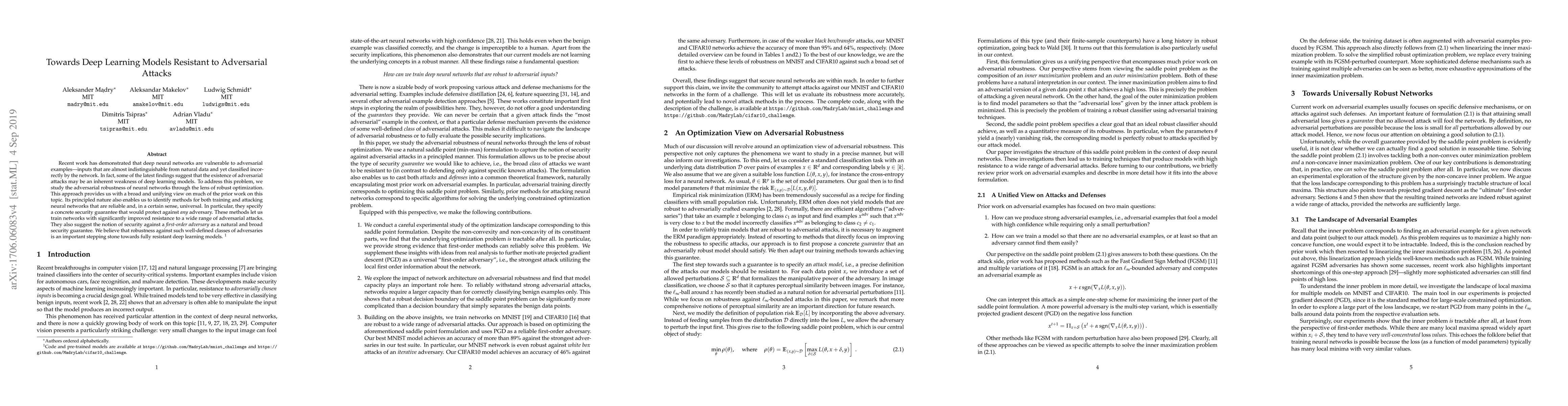 The paper introduces methods for training neural networks resistant to a wide range of adversarial attacks, specifying a security guarantee against first-order adversaries.