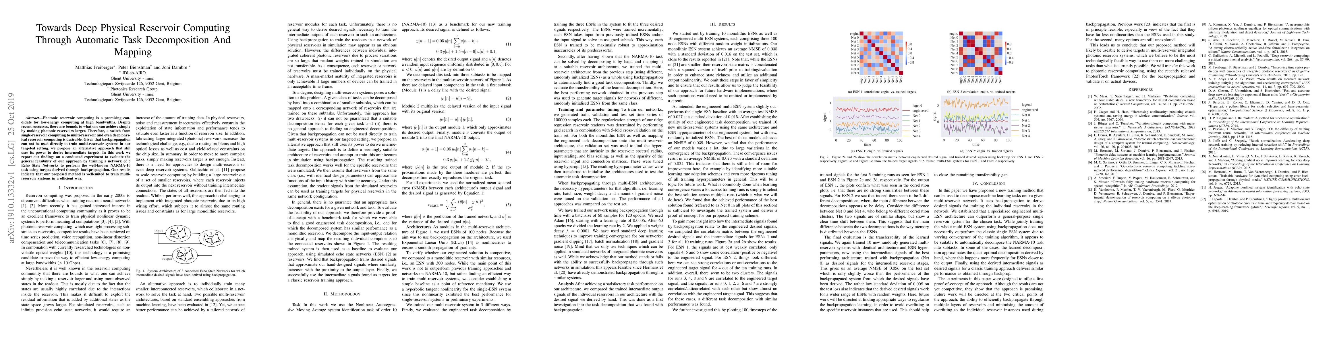 Photonic reservoir computing is a promising candidate for low-energy computing at high bandwidths. Despite recent successes, there are bounds to what one can achieve simply by making photonic reservoirs larger. Therefore, a switch from single-reservoir computing to multi-reservoir and even deep physical reservoir computing is desirable. Given that backpropagation can not be used directly to train multi-reservoir systems in our targeted setting, we propose an alternative approach that still uses its power to derive intermediate targets. In this work we report our findings on a conducted experiment to evaluate the general feasibility of our approach by training a network of 3 Echo State Networks to perform the well-known NARMA-10 task using targets derived through backpropagation. Our results indicate that our proposed method is well-suited to train multi-reservoir systems in a efficient way.
