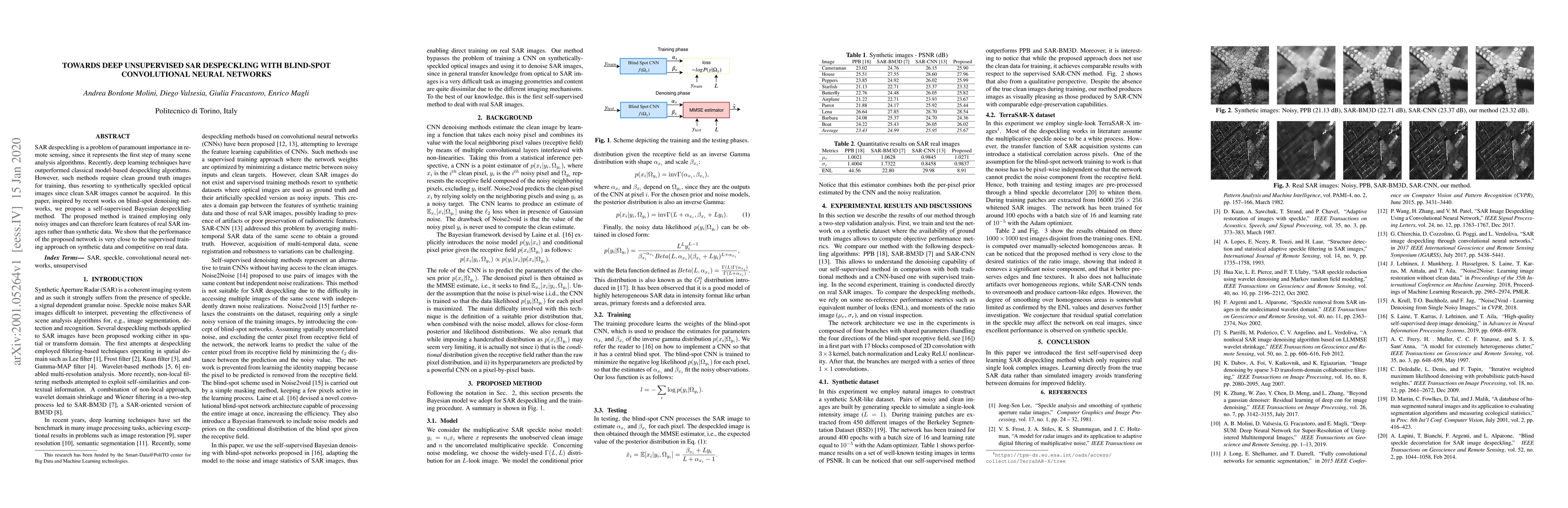 This paper proposes a self-supervised Bayesian convolutional neural network for unsupervised SAR despeckling, trained solely on noisy images. The method achieves performance comparable to supervised training on synthetic data and is competitive on real SAR images.