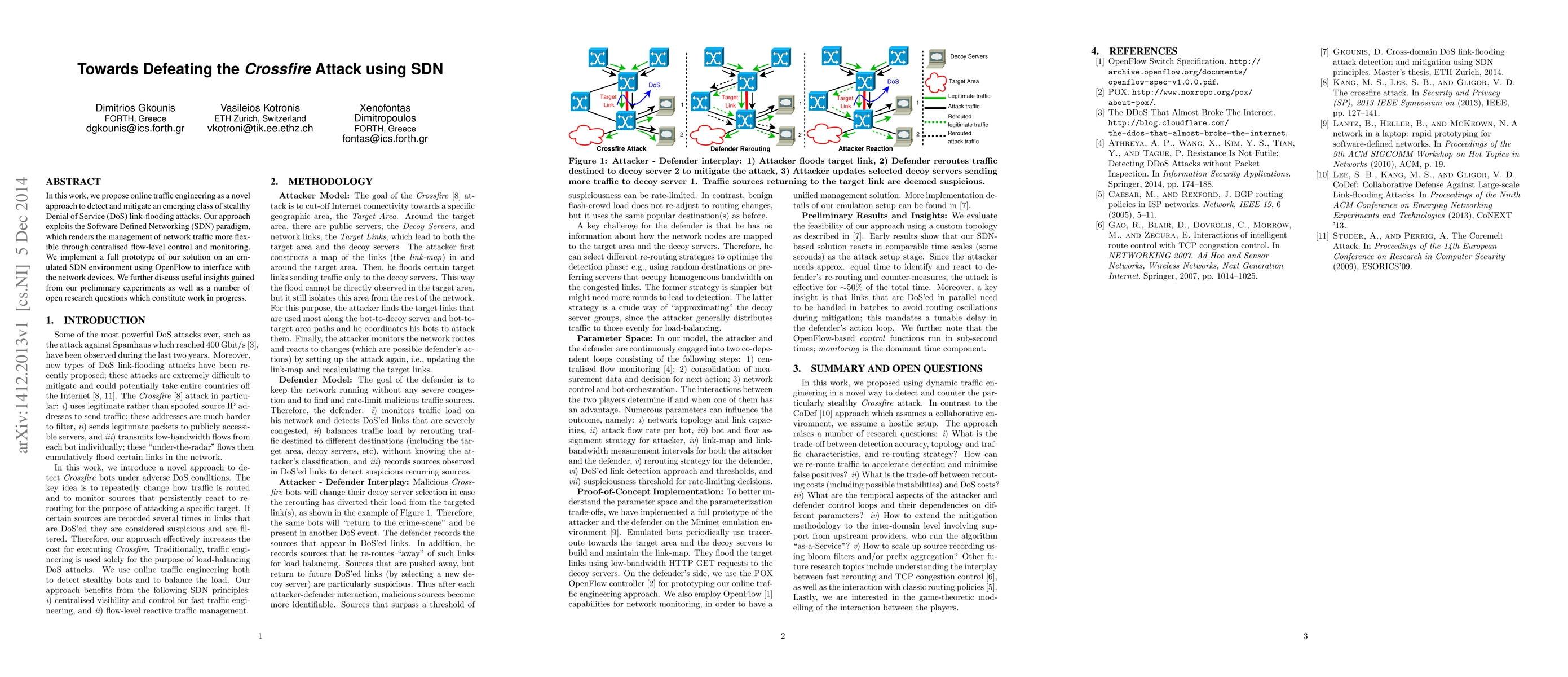 The main technical contribution is the use of dynamic traffic engineering in SDN to detect and counter the Crossfire attack, raising several research questions for further investigation.
