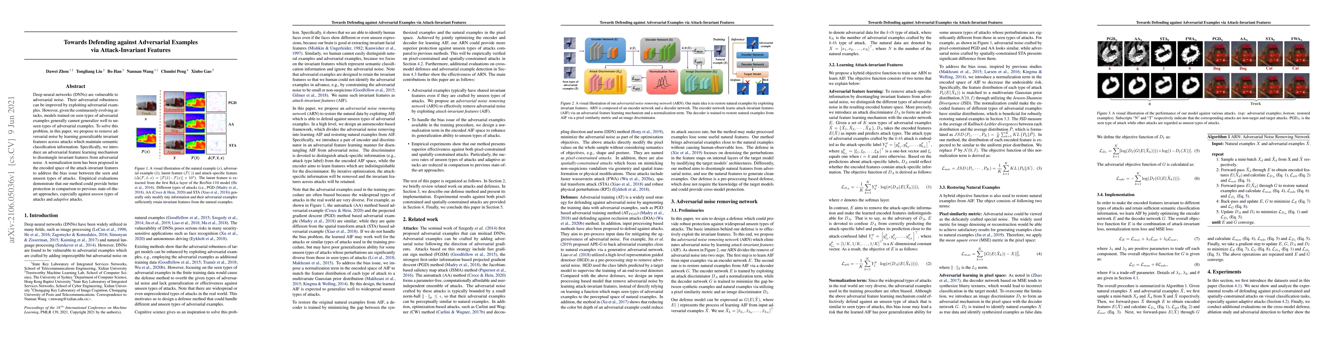 This paper proposes a method to enhance deep neural networks' robustness against adversarial attacks by learning attack-invariant features that maintain semantic classification information. The approach disentangles these features from adversarial noise and includes a normalization term to address bias issues, showing improved protection against unseen and adaptive attacks.