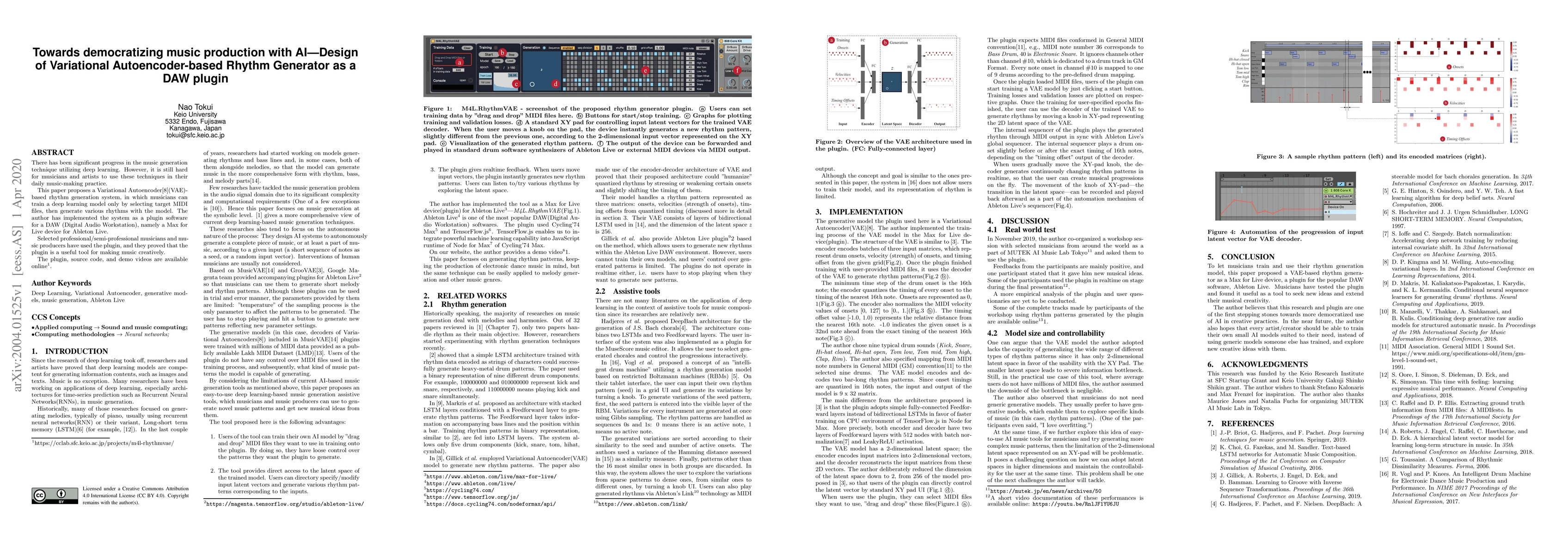 This paper proposes a Variational Autoencoder-based rhythm generator implemented as a DAW plugin for Ableton Live, enabling musicians to easily train and generate diverse rhythms using MIDI files. Feedback from professional musicians indicates the tool's effectiveness in enhancing creative music production.