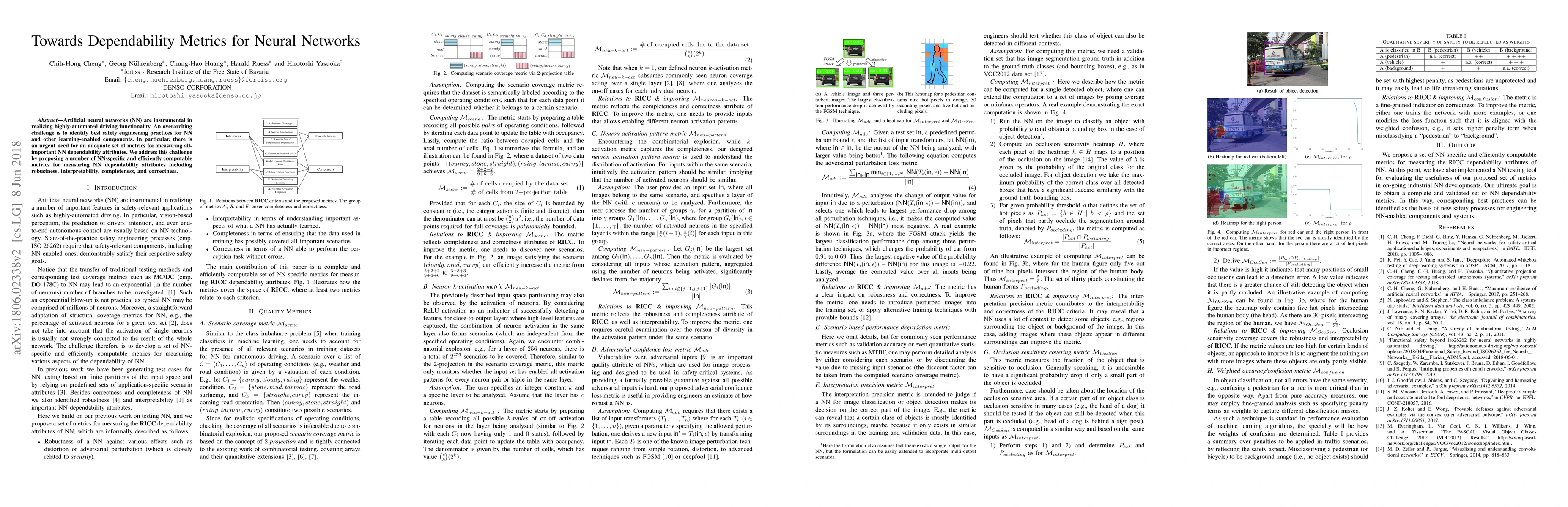 This paper proposes a set of metrics for measuring neural network dependability attributes like robustness, interpretability, completeness, and correctness to improve safety in autonomous driving applications.