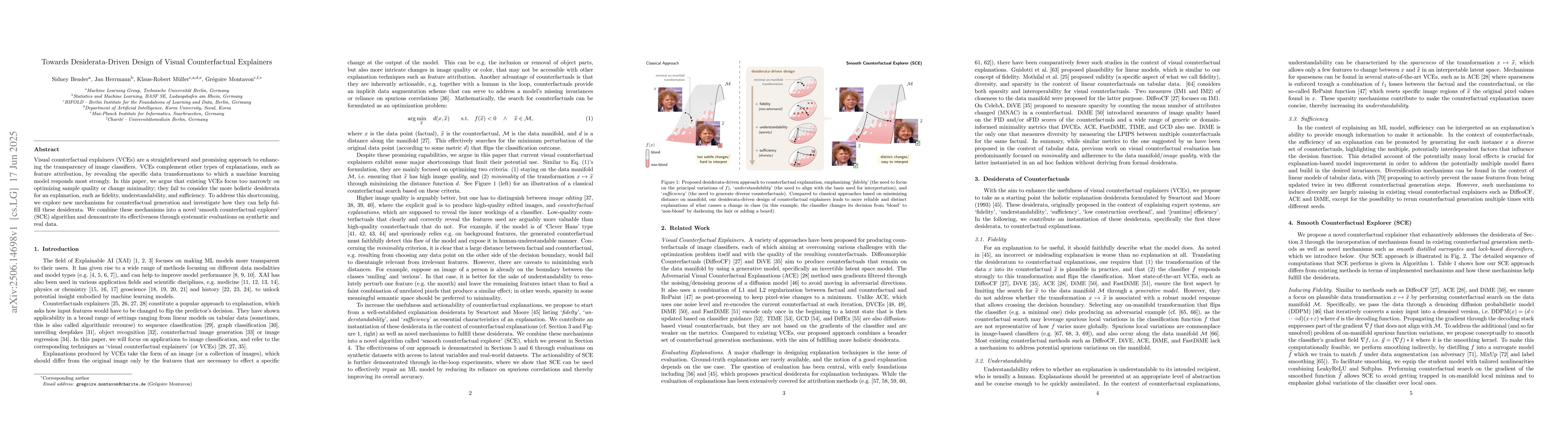 This paper argues that current Visual Counterfactual Explainers (VCEs) for image classifiers prioritize sample quality and minimal change over broader explanation desiderata like fidelity, understandability, and sufficiency. The authors propose a 'smooth counterfactual explorer' (SCE) algorithm that integrates new counterfactual generation mechanisms to better meet these holistic desiderata, demonstrating its effectiveness through evaluations on synthetic and real data.