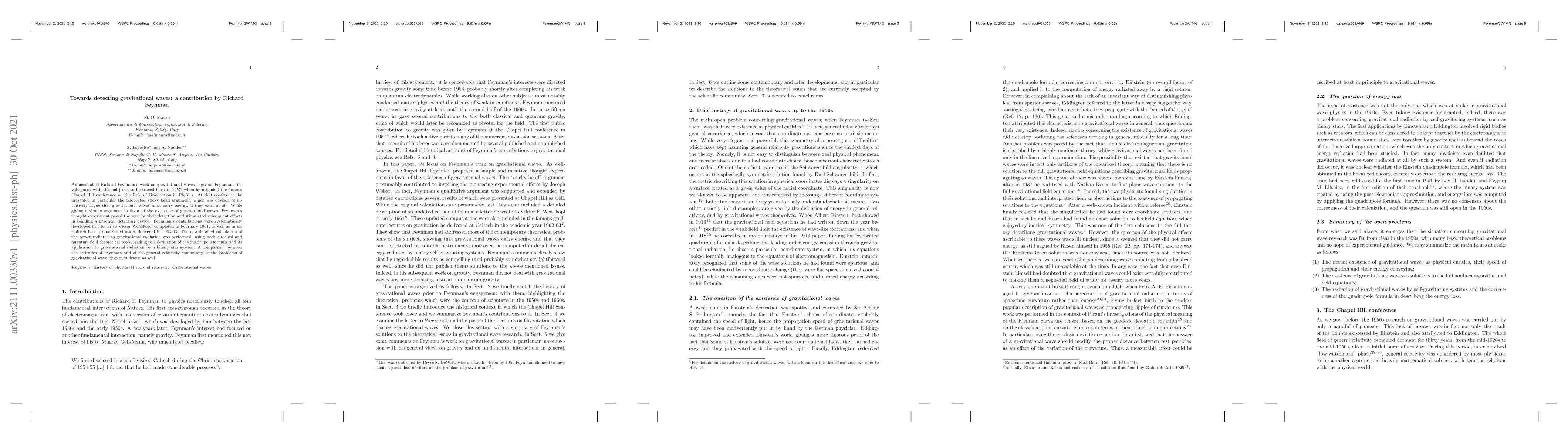 Richard Feynman's early work in the 1950s, including the "sticky bead argument," laid foundational intuitive groundwork for gravitational wave detection. His detailed calculations and lectures in the 1960s further advanced the theoretical understanding of gravitational radiation, influencing subsequent detection efforts.