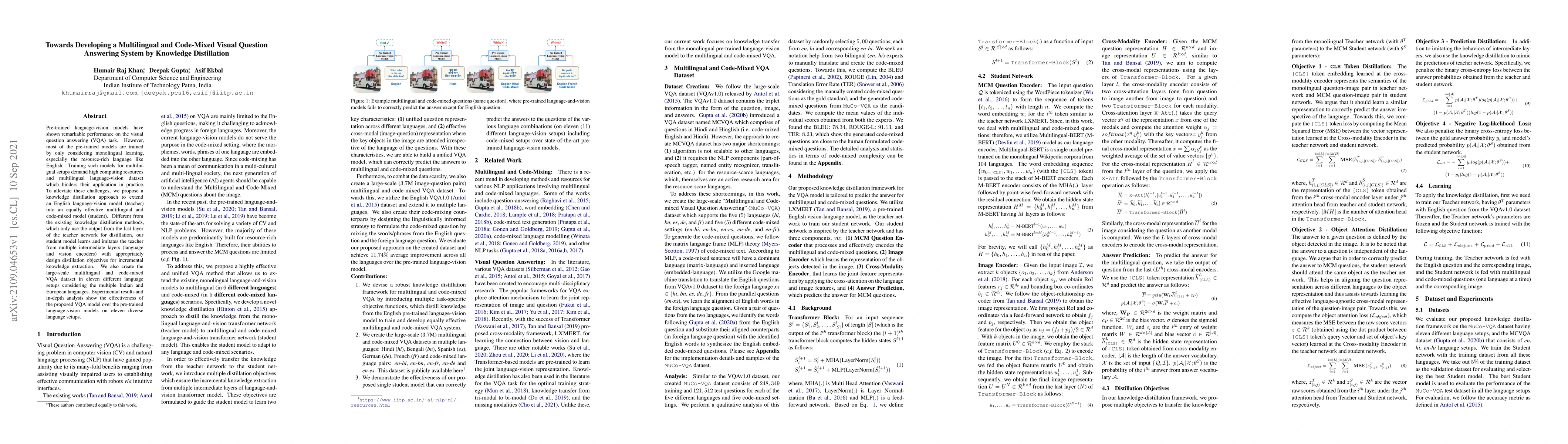 This paper proposes a knowledge distillation method to extend an English visual question answering (VQA) model to a multilingual and code-mixed VQA model. The approach leverages multiple intermediate layers for distillation, creating a large-scale multilingual VQA dataset, and demonstrates improved performance over existing models.