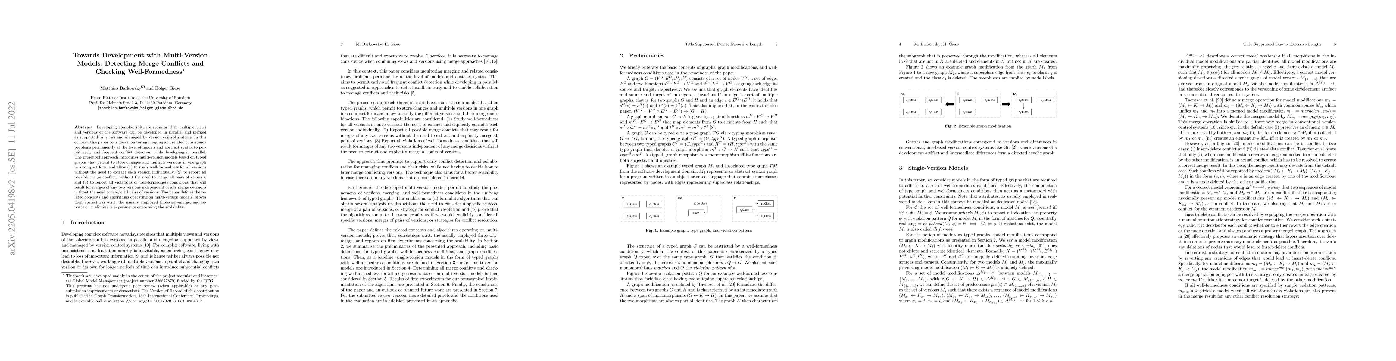 The paper introduces multi-version models based on typed graphs and algorithms for detecting merge conflicts and well-formedness violations, proving their correctness and demonstrating their scalability through preliminary experiments.
