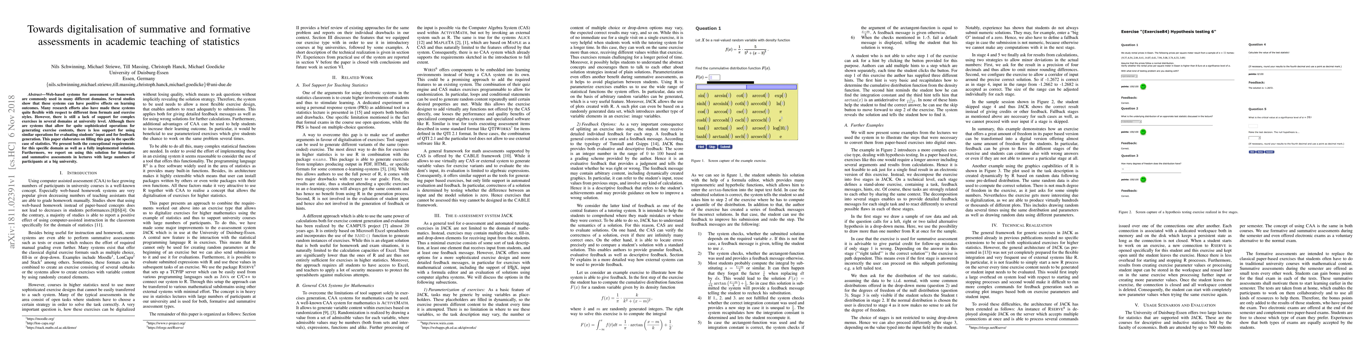 Web-based systems for assessment or homework are commonly used in many different domains. Several studies show that these systems can have positive effects on learning outcomes. Many research efforts also have made these systems quite flexible with respect to different item formats and exercise styles. However, there is still a lack of support for complex exercises in several domains at university level. Although there are systems that allow for quite sophisticated operations for generating exercise contents, there is less support for using similar operations for evaluating students' input and for feedback generation. This paper elaborates on filling this gap in the specific case of statistics. We present both the conceptional requirements for this specific domain as well as a fully implemented solution. Furthermore, we report on using this solution for formative and summative assessments in lectures with large numbers of participants at a big university.