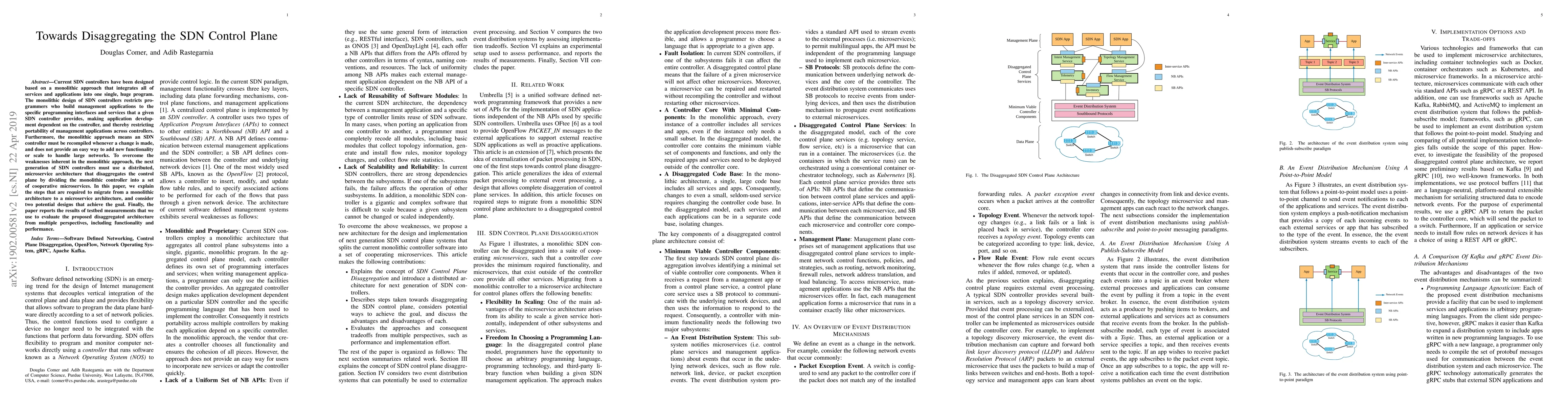 This paper explores transitioning SDN controllers from a monolithic to a microservice architecture to enhance application portability, ease of functionality addition, and scalability. It proposes two potential disaggregated architectures and evaluates them using testbed measurements focusing on functionality and performance.