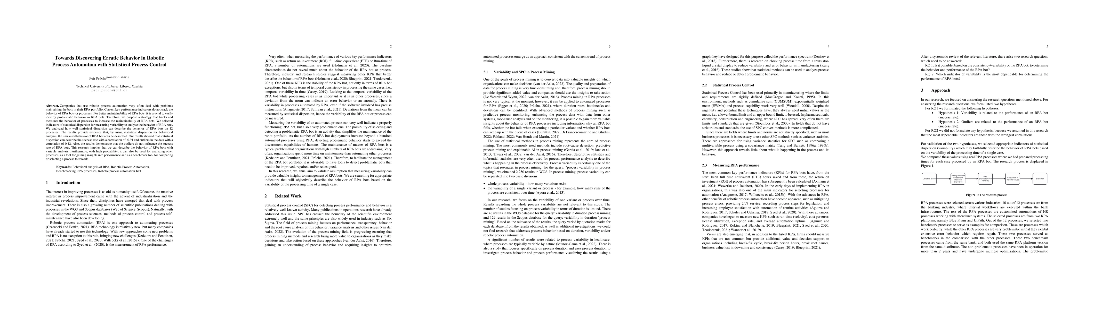Companies that use robotic process automation very often deal with problems maintaining the bots in their RPA portfolio. Current key performance indicators do not track the behavior of RPA bots or processes. For better maintainability of RPA bots, it is crucial to easily identify problematic behavior in RPA bots. Therefore, we propose a strategy that tracks and measures the behavior of processes to increase the maintainability of RPA bots. We selected indicators of statistical dispersion for measuring variability to analyze the behavior of RPA bots. We analyzed how well statistical dispersion can describe the behavior of RPA bots on 12 processes. The results provide evidence that, by using statistical dispersion for behavioral analysis, the unwanted behavior of RPA bots can be described. Our results showed that statistical dispersion can describe the success rate with a correlation of -0.91 and outliers in the data with a correlation of 0.42. Also, the results demonstrate that the outliers do not influence the success rate of RPA bots. This research implies that we can describe the behavior of RPA bots with variable analysis. Furthermore, with high probability, it can also be used for analyzing other processes, as a tool for gaining insights into performance and as a benchmark tool for comparing or selecting a process to rework.
