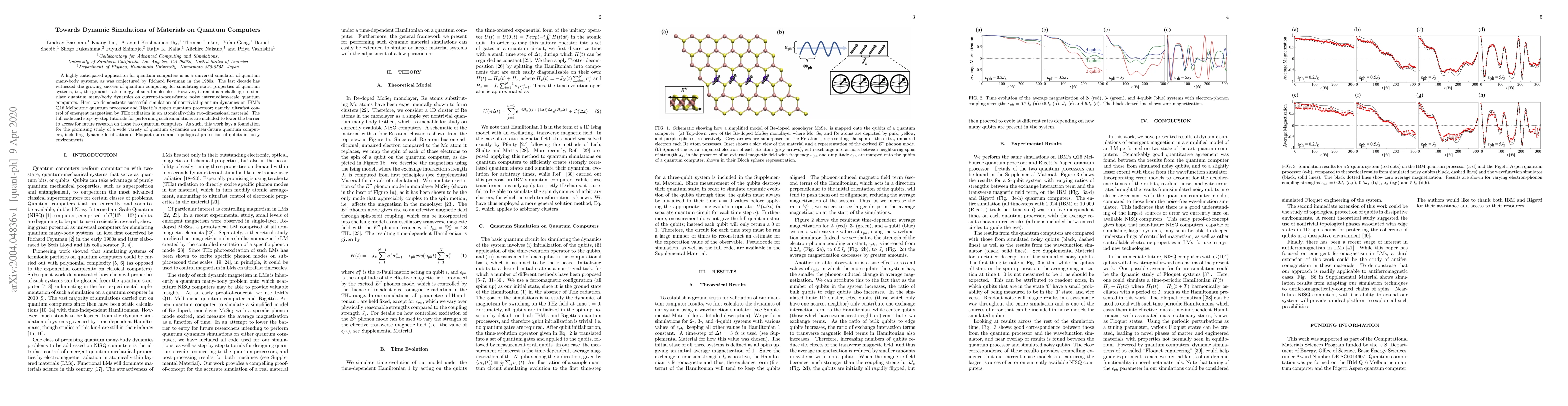 This paper demonstrates the first successful simulations of nontrivial quantum dynamics on near-future quantum computers, specifically ultrafast control of magnetism in a 2D material using THz radiation. It provides full code and tutorials to facilitate future research on quantum simulations, paving the way for broader studies of quantum dynamics.