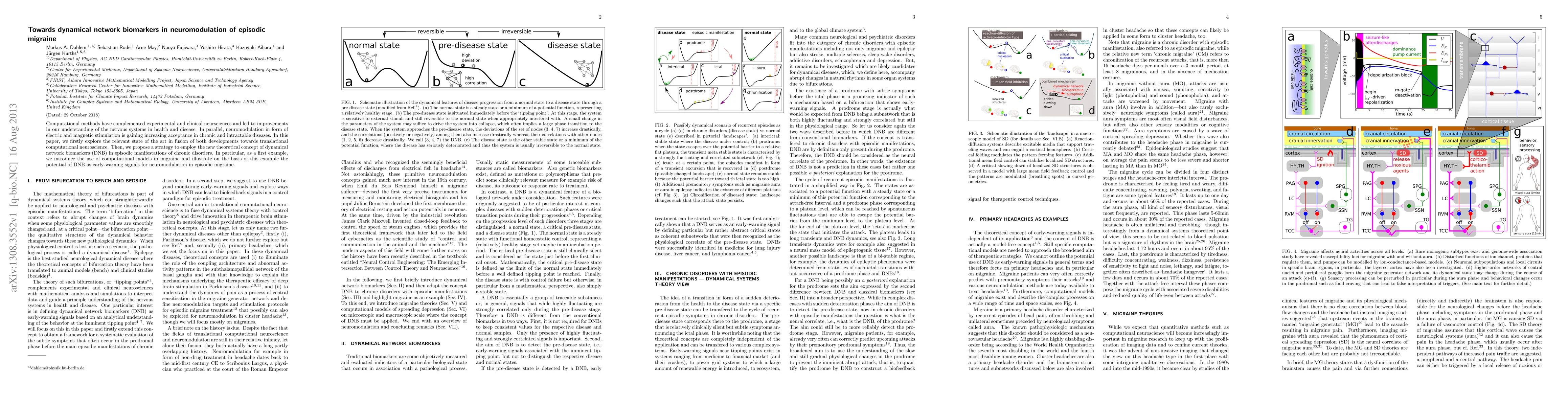 Computational methods have complemented experimental and clinical neursciences and led to improvements in our understanding of the nervous systems in health and disease. In parallel, neuromodulation in form of electric and magnetic stimulation is gaining increasing acceptance in chronic and intractable diseases. In this paper, we firstly explore the relevant state of the art in fusion of both developments towards translational computational neuroscience. Then, we propose a strategy to employ the new theoretical concept of dynamical network biomarkers (DNB) in episodic manifestations of chronic disorders. In particular, as a first example, we introduce the use of computational models in migraine and illustrate on the basis of this example the potential of DNB as early-warning signals for neuromodulation in episodic migraine.