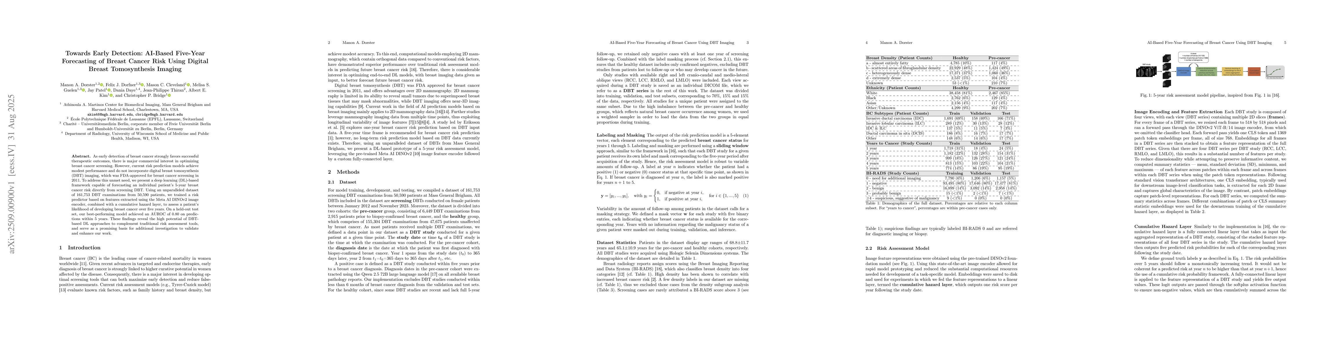 As early detection of breast cancer strongly favors successful therapeutic outcomes, there is major commercial interest in optimizing breast cancer screening. However, current risk prediction models achieve modest performance and do not incorporate digital breast tomosynthesis (DBT) imaging, which was FDA-approved for breast cancer screening in 2011. To address this unmet need, we present a deep learning (DL)-based framework capable of forecasting an individual patient's 5-year breast cancer risk directly from screening DBT. Using an unparalleled dataset of 161,753 DBT examinations from 50,590 patients, we trained a risk predictor based on features extracted using the Meta AI DINOv2 image encoder, combined with a cumulative hazard layer, to assess a patient's likelihood of developing breast cancer over five years. On a held-out test set, our best-performing model achieved an AUROC of 0.80 on predictions within 5 years. These findings reveal the high potential of DBT-based DL approaches to complement traditional risk assessment tools, and serve as a promising basis for additional investigation to validate and enhance our work.