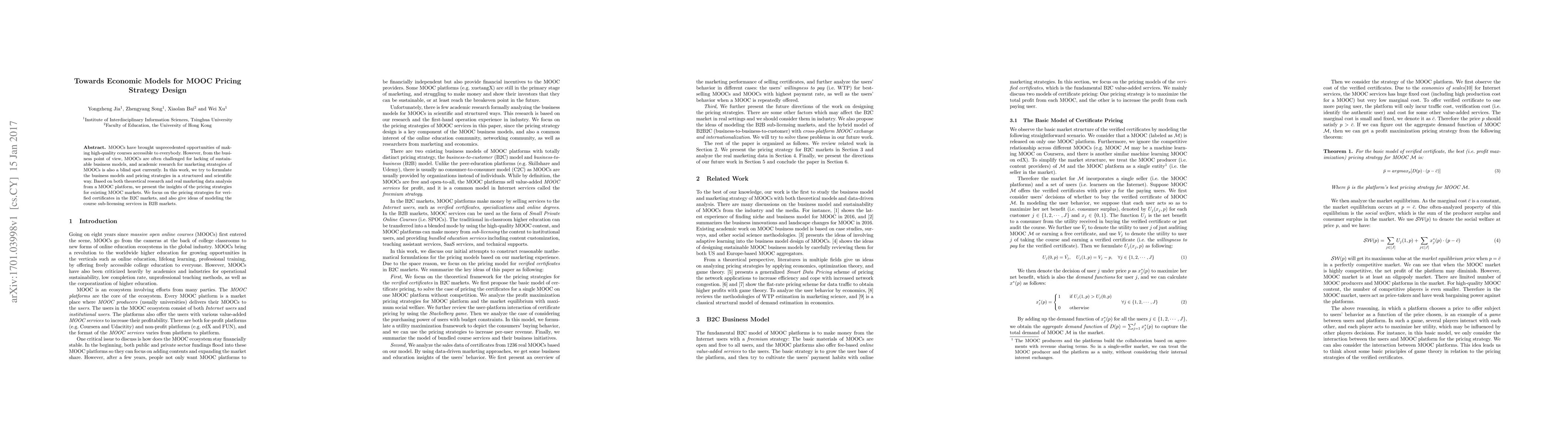 This research paper explores economic models for designing pricing strategies in Massive Open Online Courses (MOOCs), providing insights into B2C markets with verified certificates and ideas for B2B course sub-licensing services.