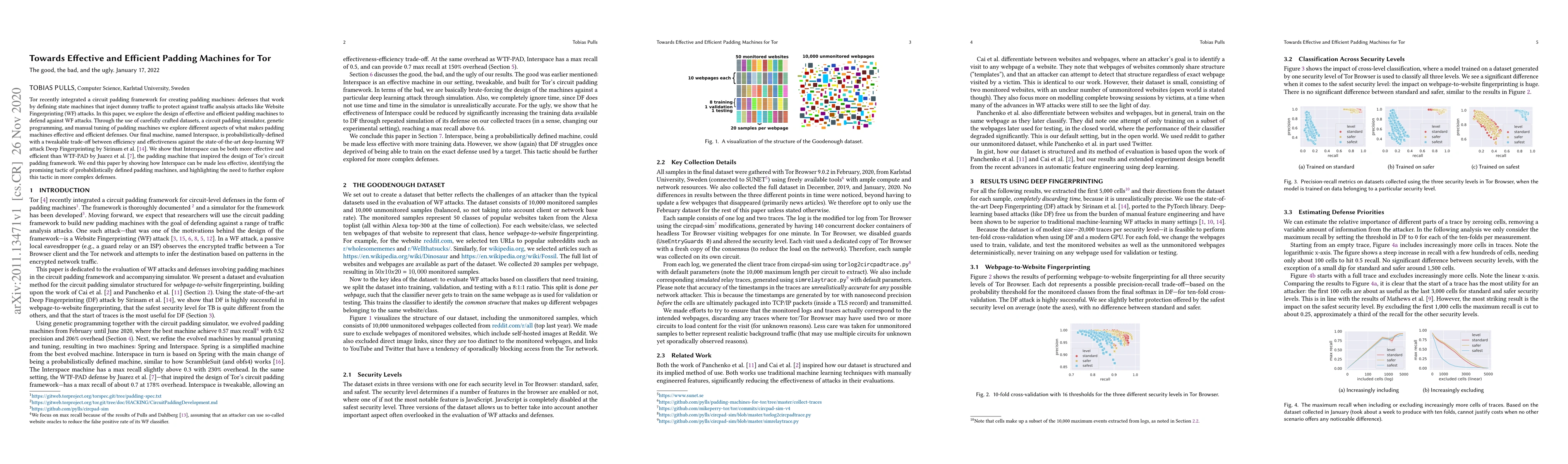 This paper investigates the design of effective and efficient padding machines for Tor to defend against Website Fingerprinting attacks. The proposed Interspace machine, which is probabilistically defined, demonstrates superior effectiveness and efficiency compared to existing padding machines, suggesting a promising direction for future research in this area.