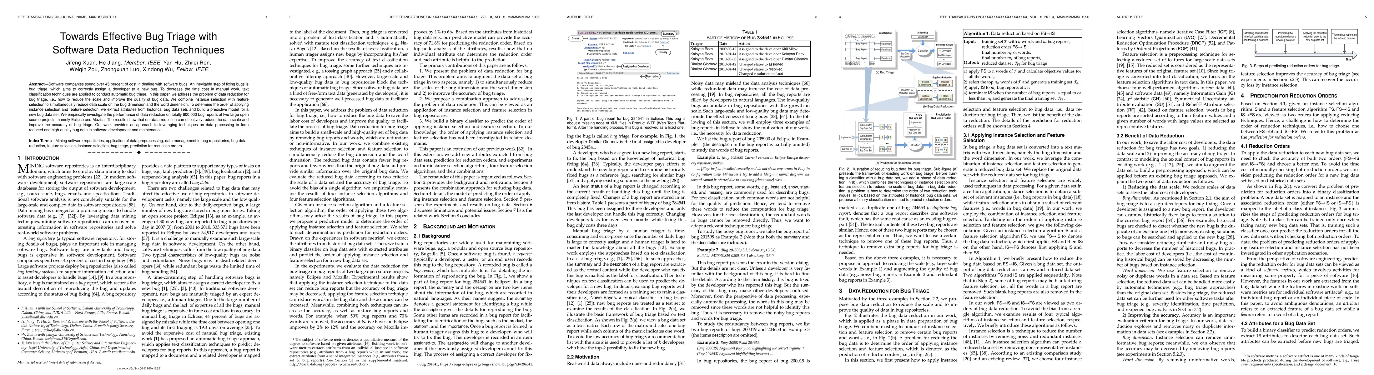 This paper proposes a method combining instance selection and feature selection to reduce the scale and improve the quality of bug data for effective bug triage. The approach is empirically tested on 600,000 bug reports from Eclipse and Mozilla, demonstrating significant reductions in data scale and improved triage accuracy.