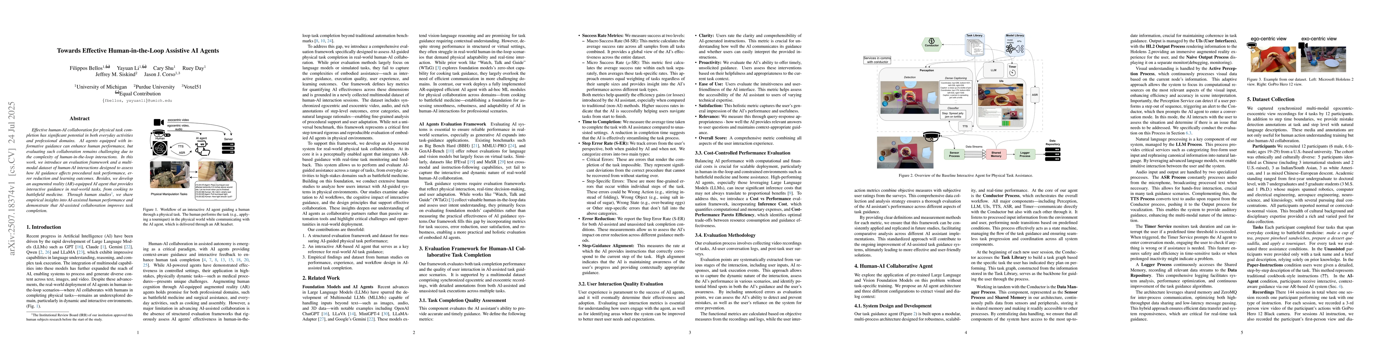 Effective human-AI collaboration for physical task completion has significant potential in both everyday activities and professional domains. AI agents equipped with informative guidance can enhance human performance, but evaluating such collaboration remains challenging due to the complexity of human-in-the-loop interactions. In this work, we introduce an evaluation framework and a multimodal dataset of human-AI interactions designed to assess how AI guidance affects procedural task performance, error reduction and learning outcomes. Besides, we develop an augmented reality (AR)-equipped AI agent that provides interactive guidance in real-world tasks, from cooking to battlefield medicine. Through human studies, we share empirical insights into AI-assisted human performance and demonstrate that AI-assisted collaboration improves task completion.