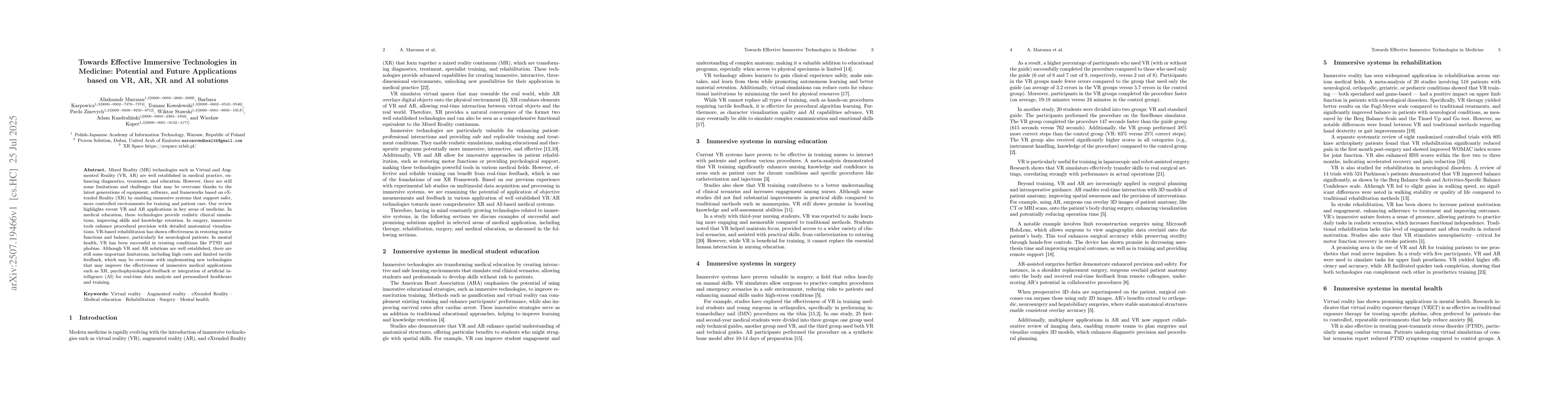 The paper discusses advancements in immersive technologies (VR, AR, XR) and their integration with AI for enhanced medical applications, including real-time data analysis and personalized healthcare.