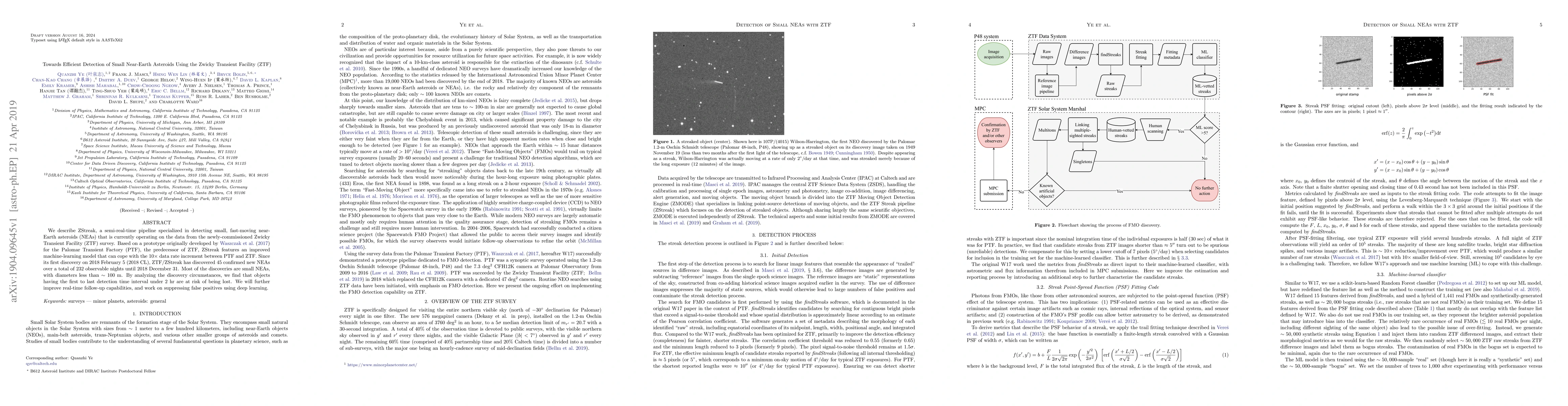 The ZStreak pipeline, operating on the Zwicky Transient Facility (ZTF) data, efficiently detects small, fast-moving near-Earth asteroids (NEAs). Since its first discovery in 2018, it has identified 45 new NEAs, mostly under 100 m in diameter, with ongoing efforts to enhance real-time follow-up and reduce false positives.